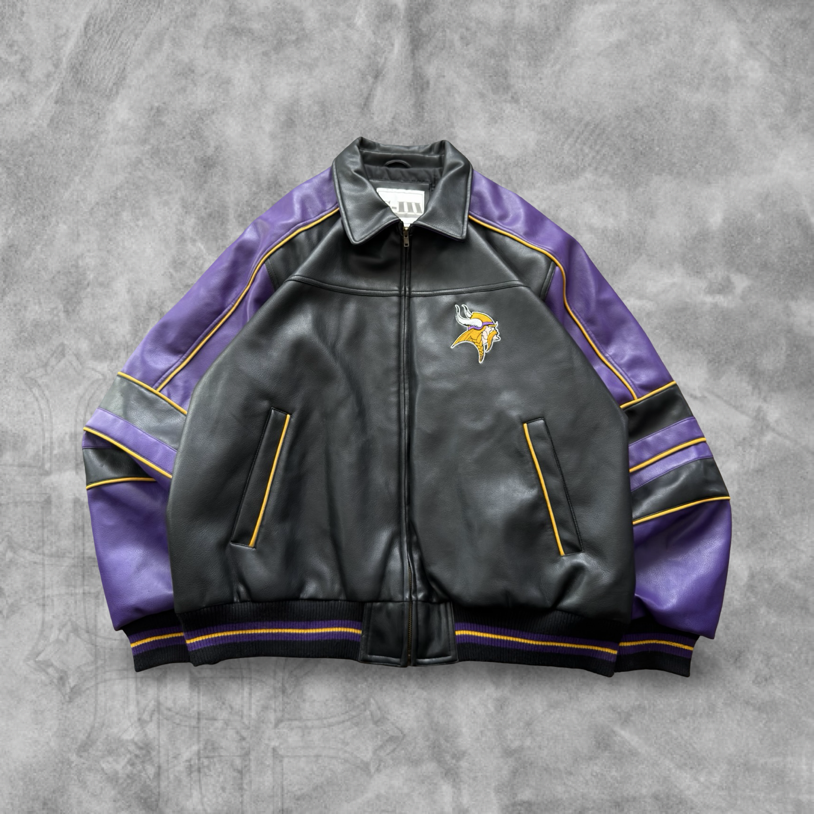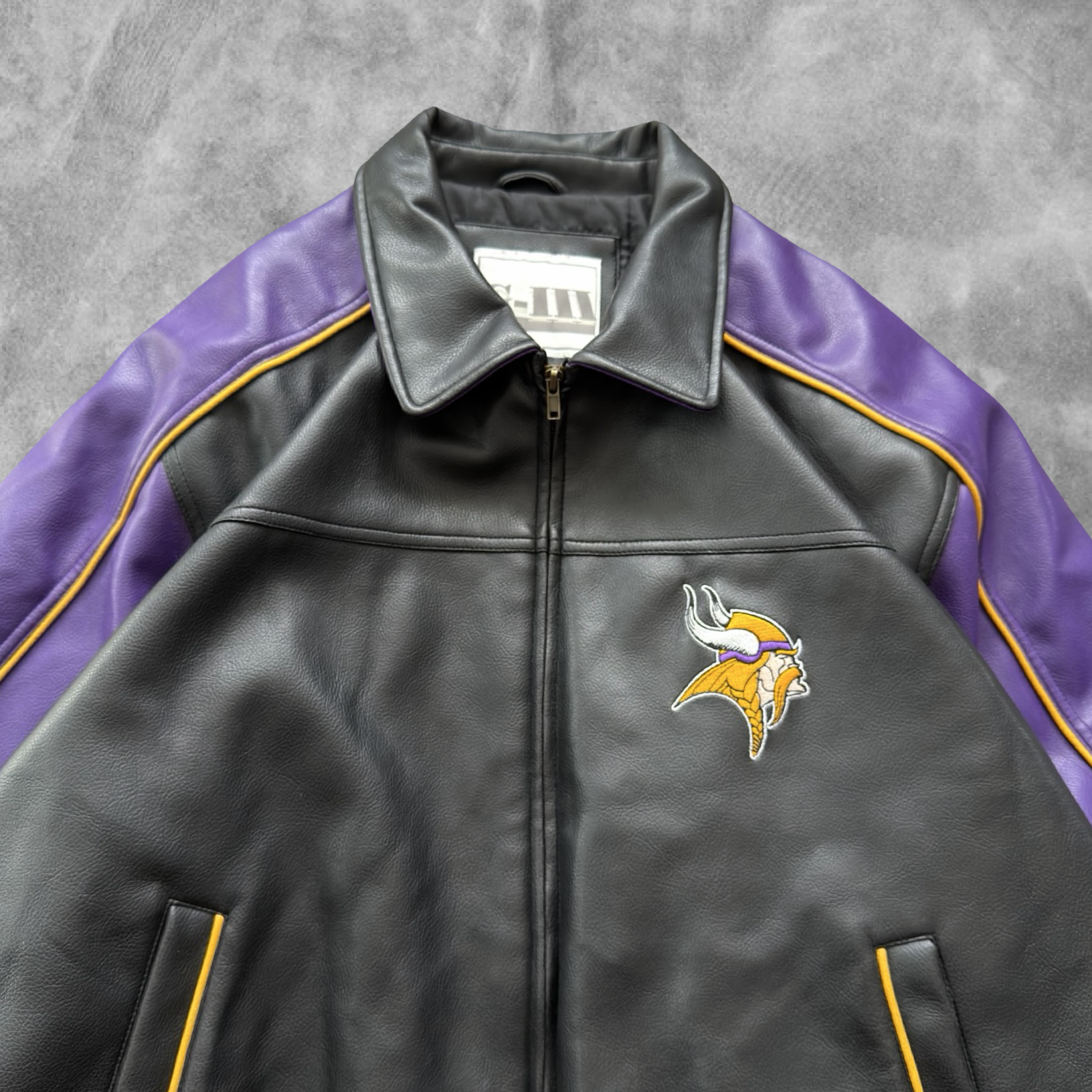 Black Carl Banks GIII Minnesota Vikings Leather Jacket 1990s