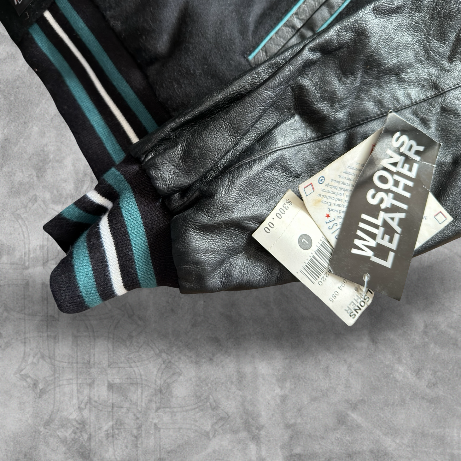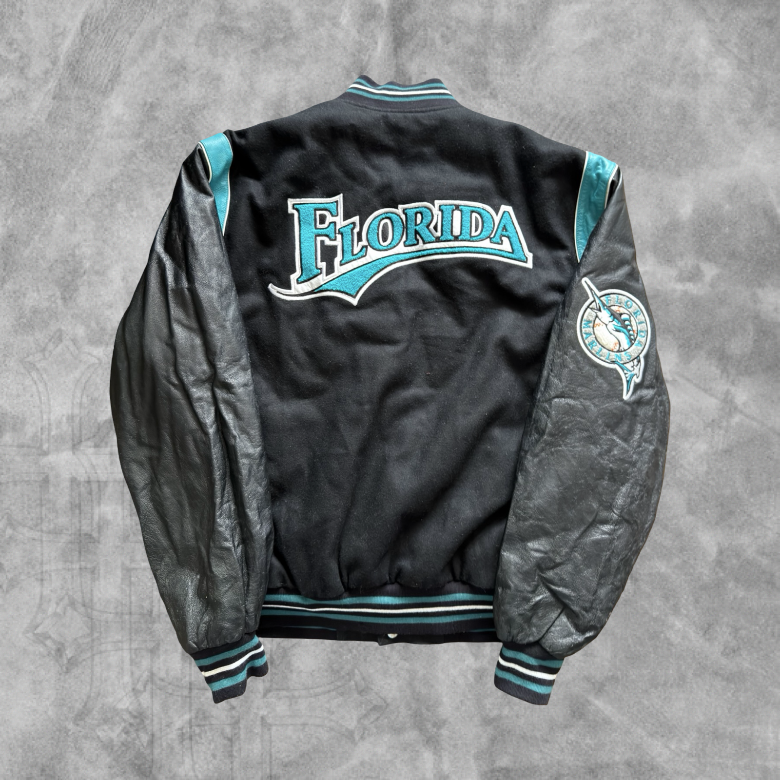 Black Florida Marlins Leather Reversible Varsity Jacket 1990s (L)