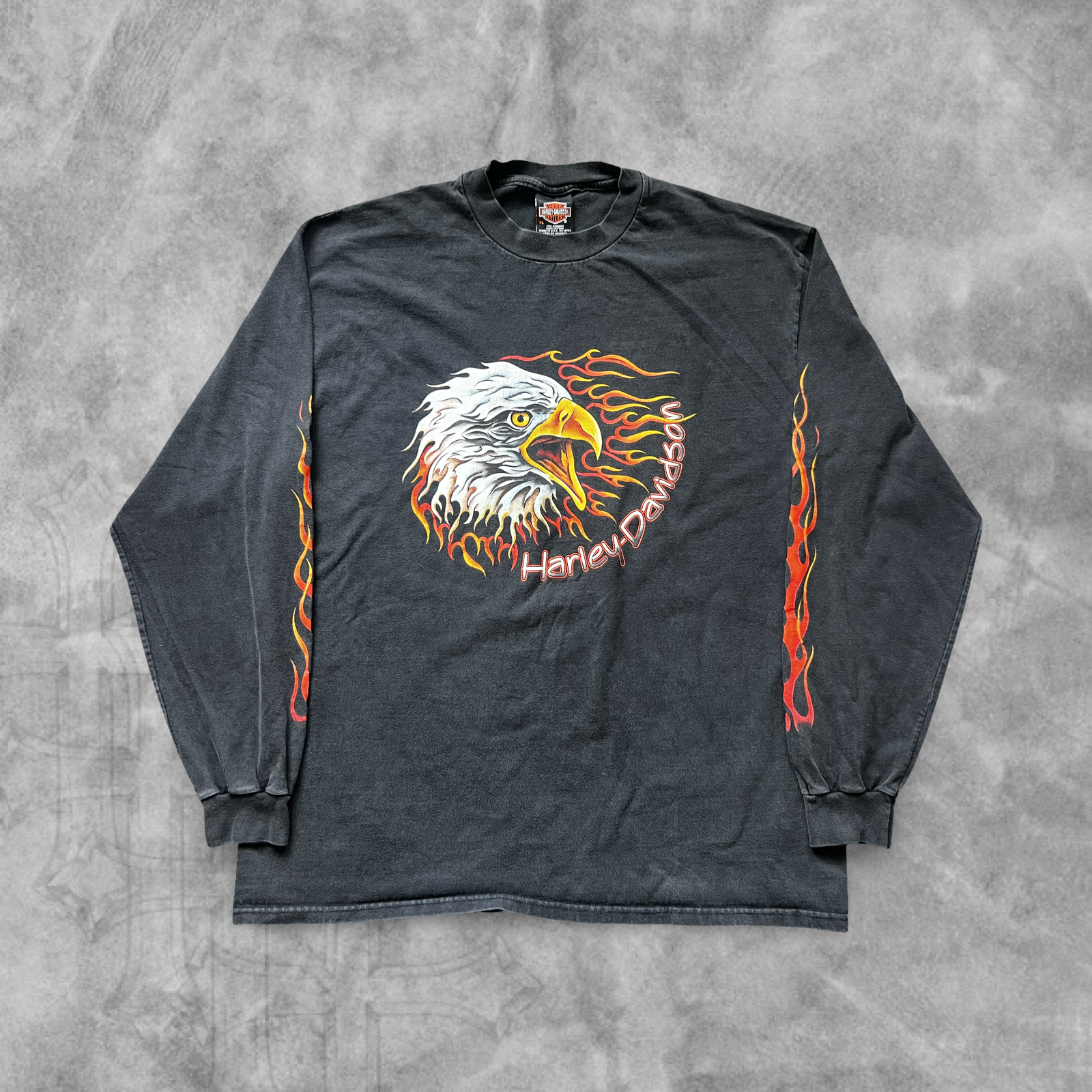 Black Harley Davidson Eagle Flame Long Sleeve Shirt 1998 (XL)