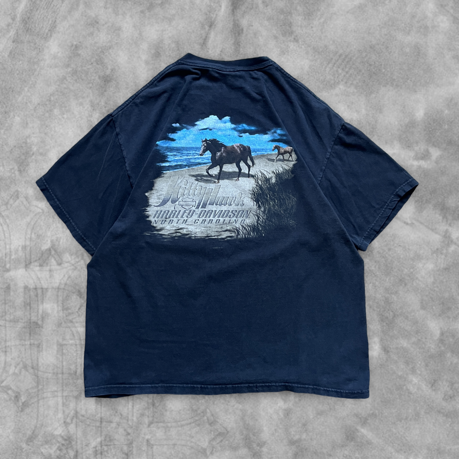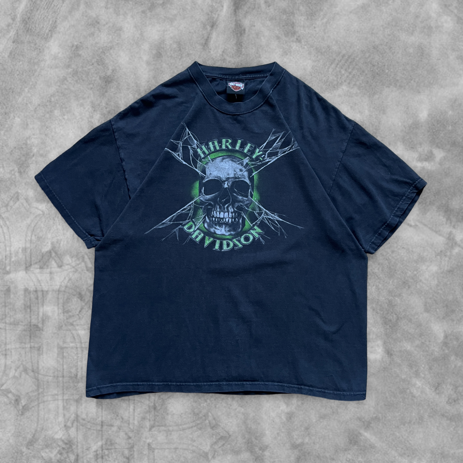 Black Harley Davidson Green Flame Skull Shirt 2007 (XL)