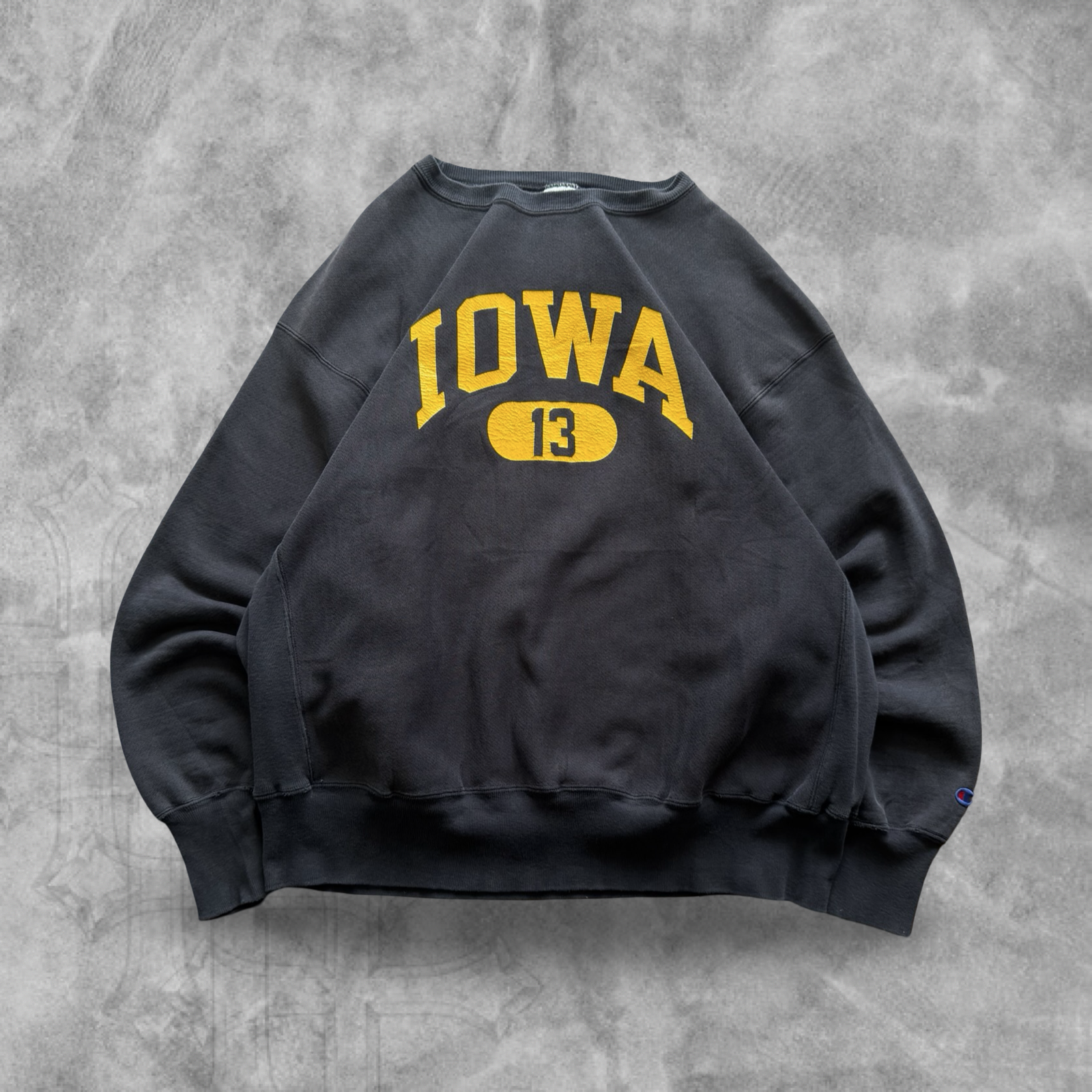 Black Iowa Hawkeyes Champion Reverse Weave Sweatshirt 1990s (XL)