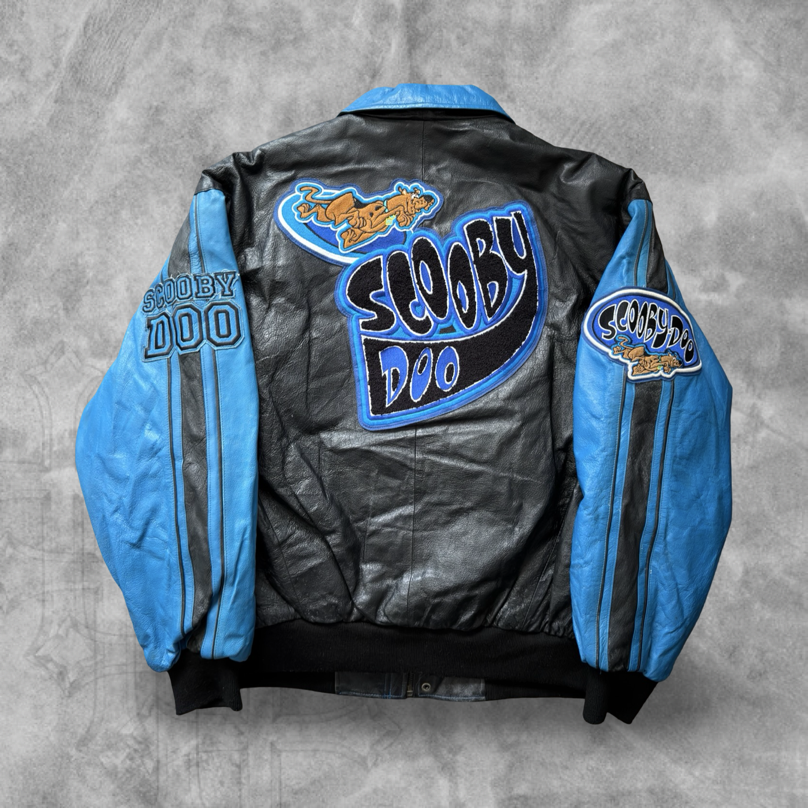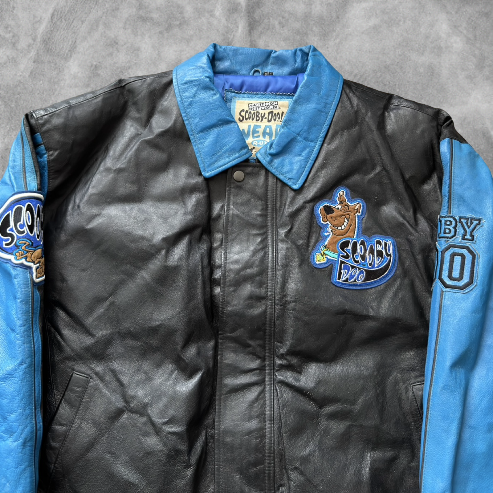 Black Scooby-Doo Embroidered Leather Jacket 1990s (XL)