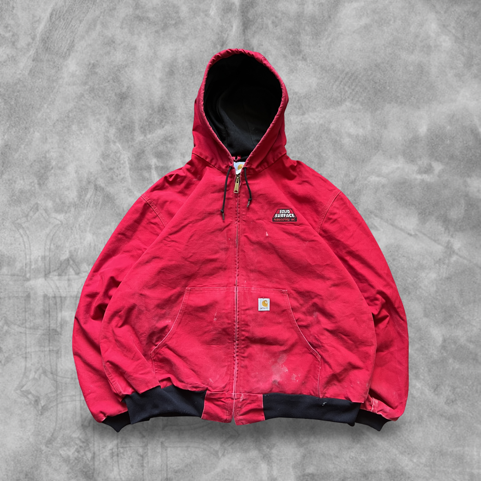 Cherry Red Carhartt Hooded Jacket 1990s (XXL)