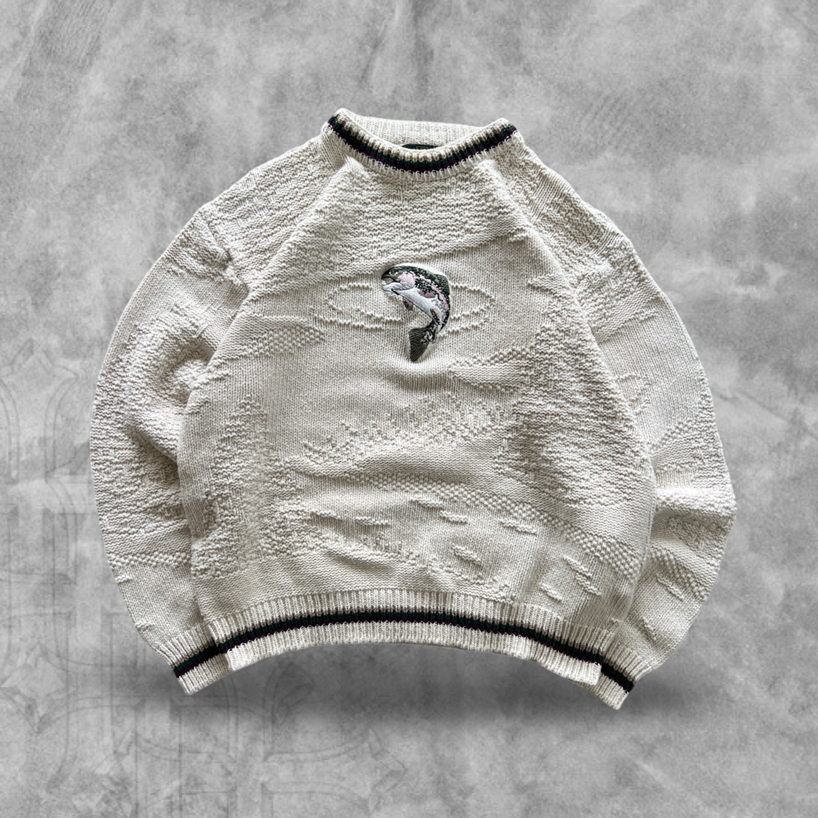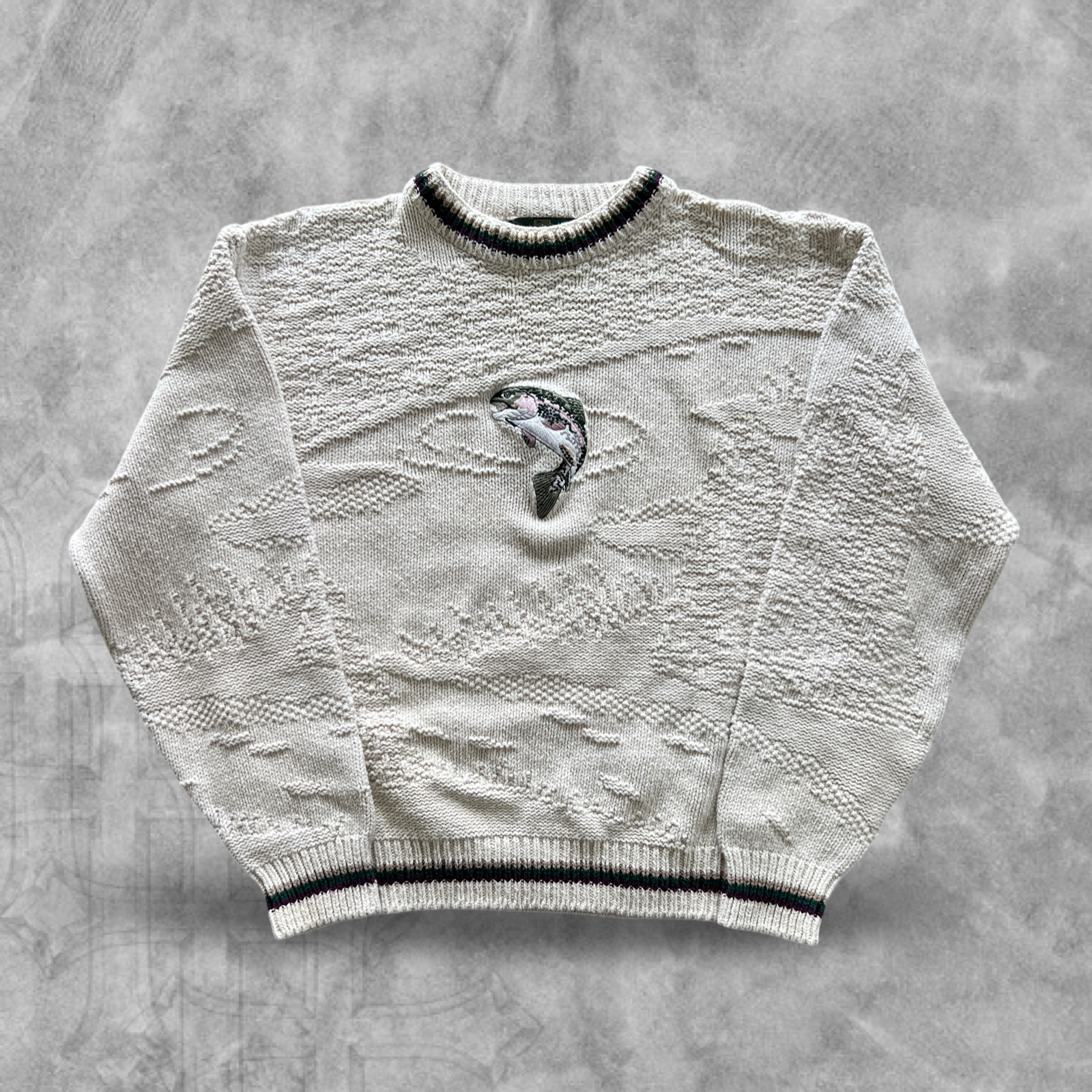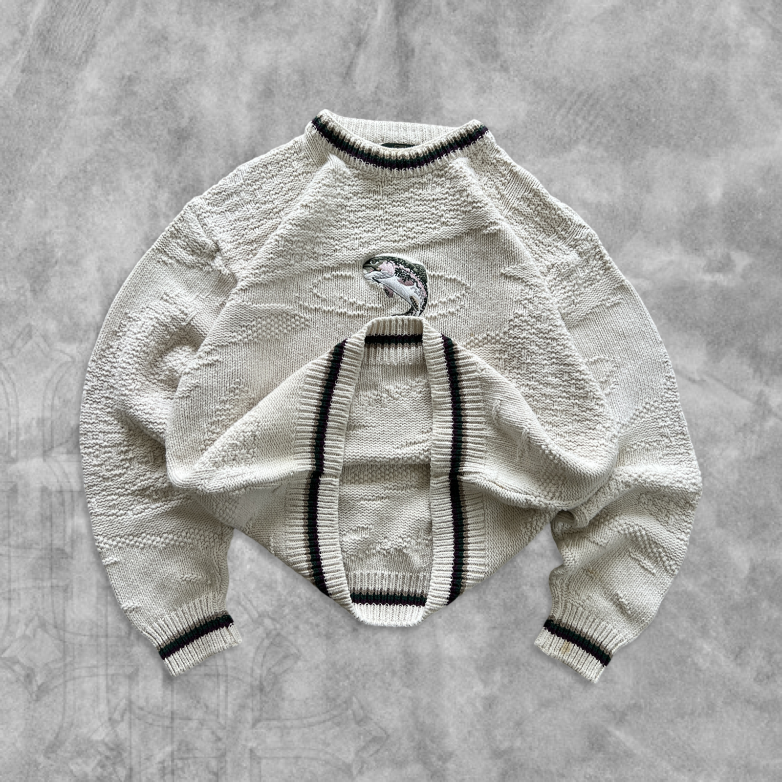 Cream Bass Textured Knit Sweater 1990s (XL)