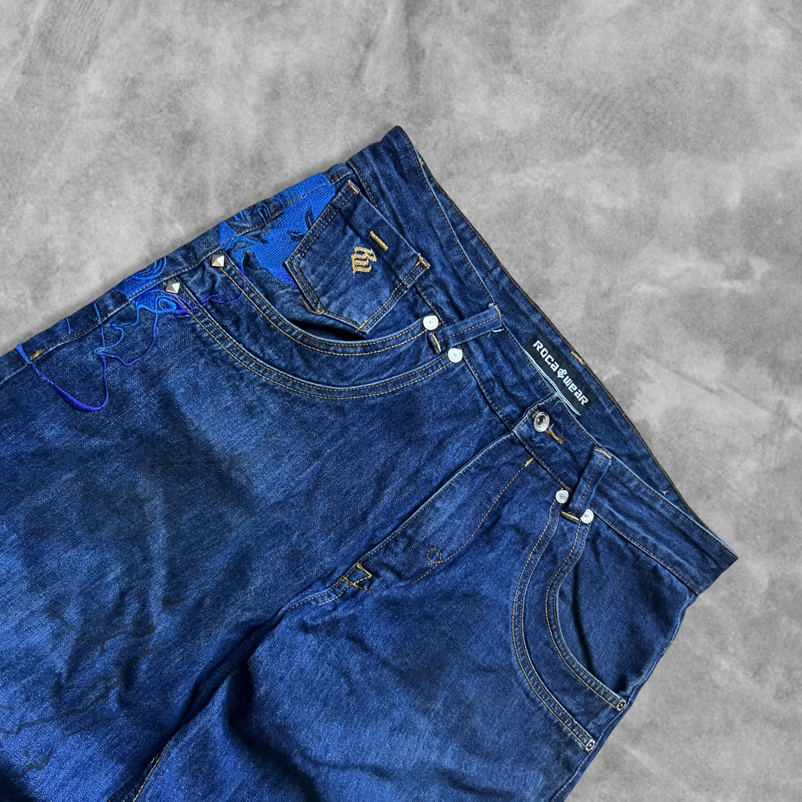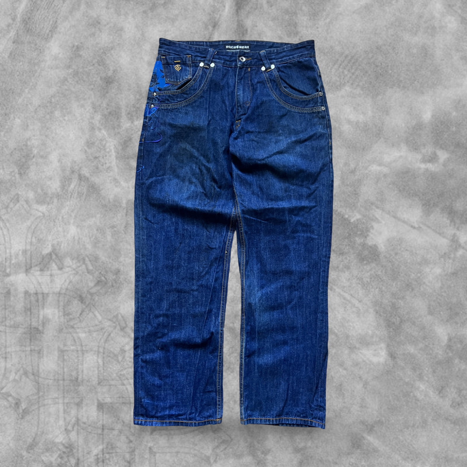 Denim Embroidered Lady’s Roca Wear Baggy Jeans 1990s (36x32)