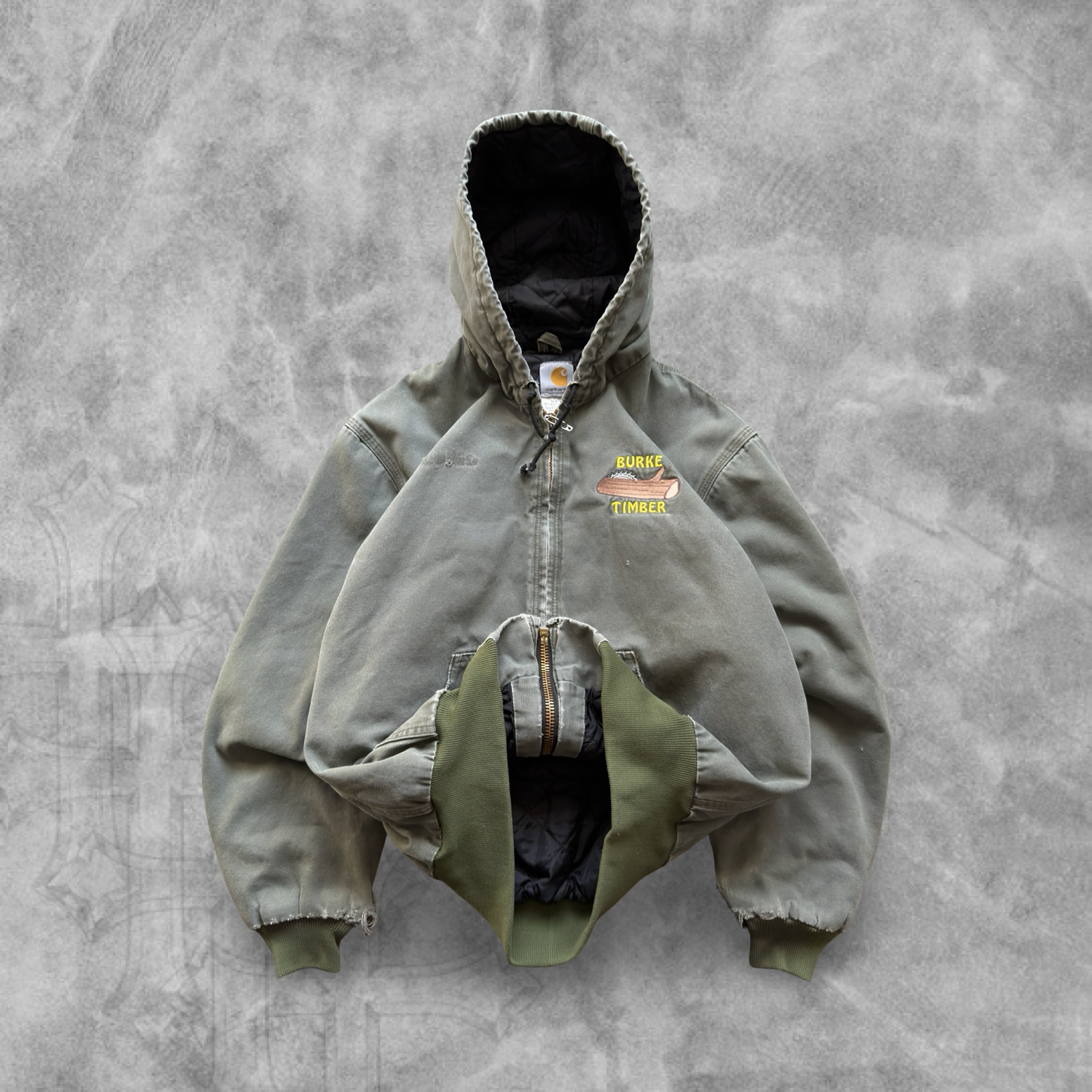 Distressed Olive Green Carhartt Hooded Jacket 1990s (M)