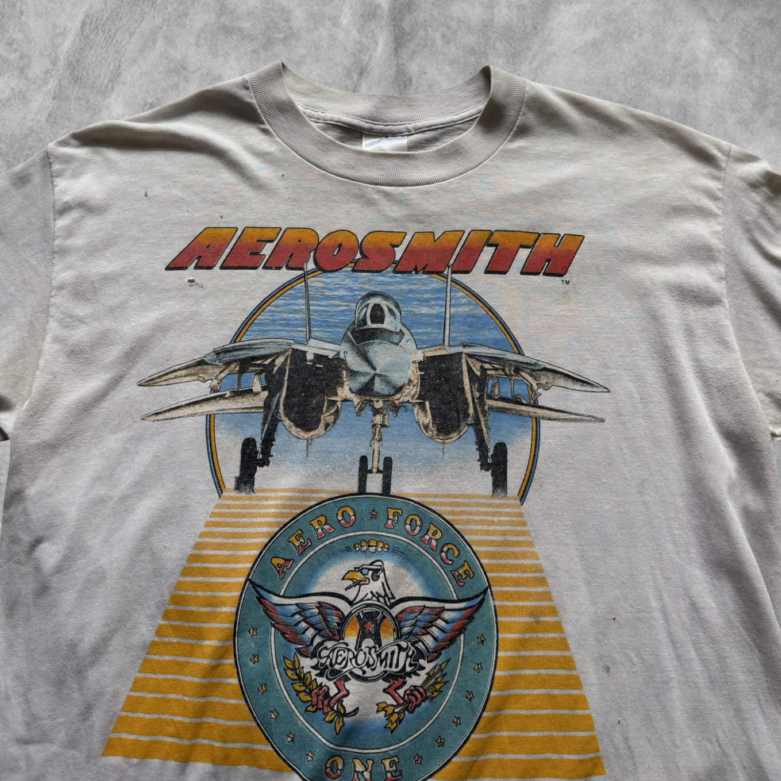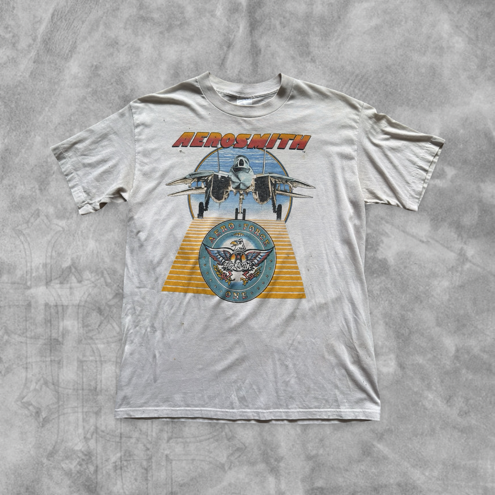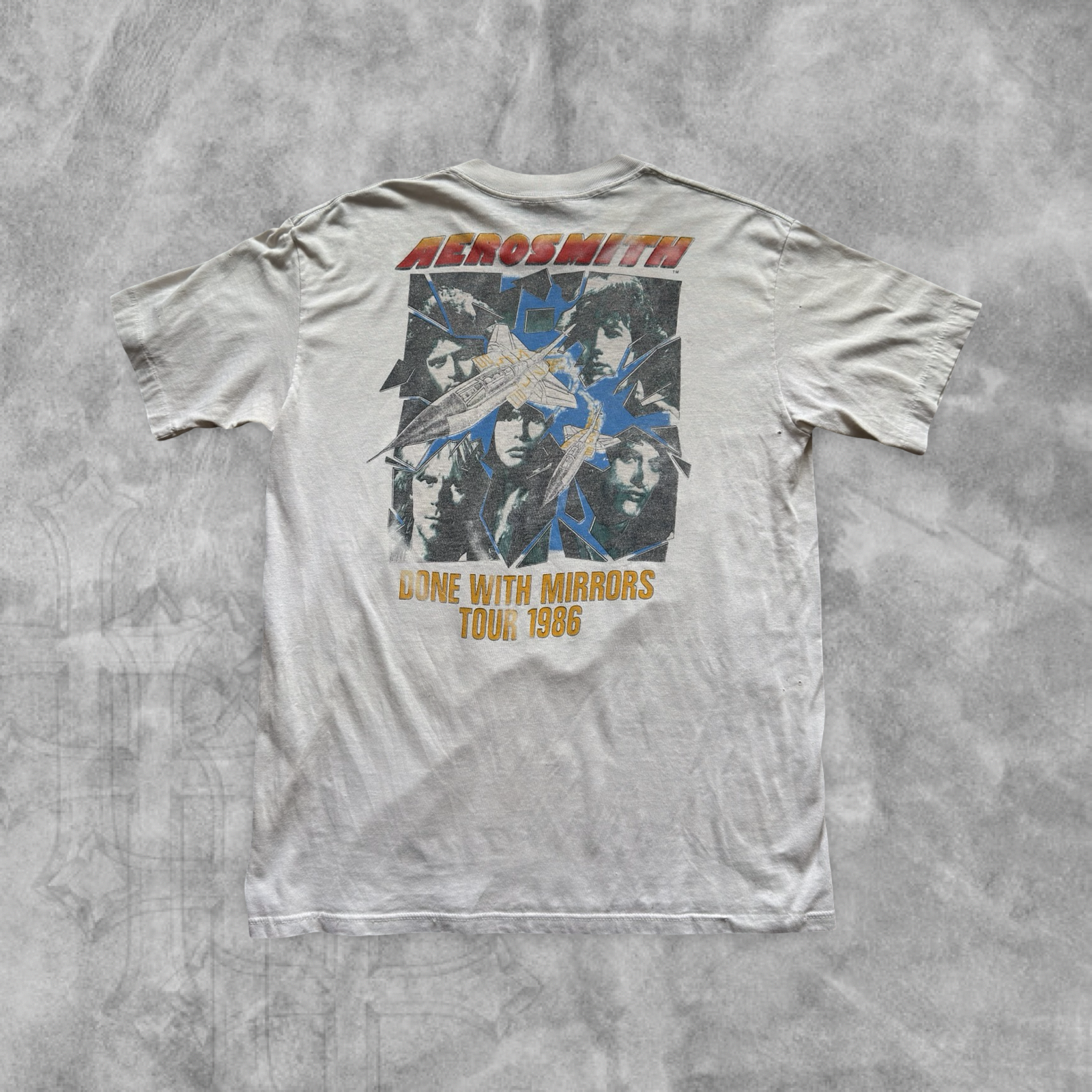Distressed White Aero Smith Done With Mirrors Tour Shirt 1986 (L)