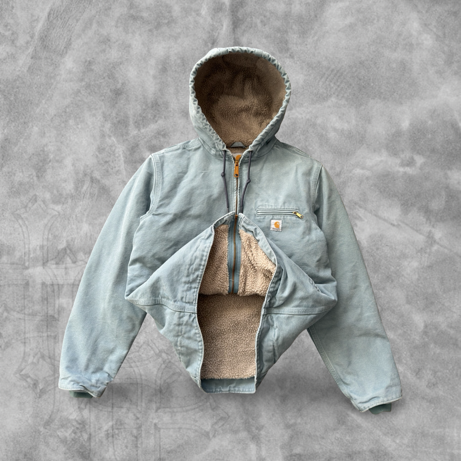 Faded Baby Blue Hooded Carhartt Jacket 2000s (S)