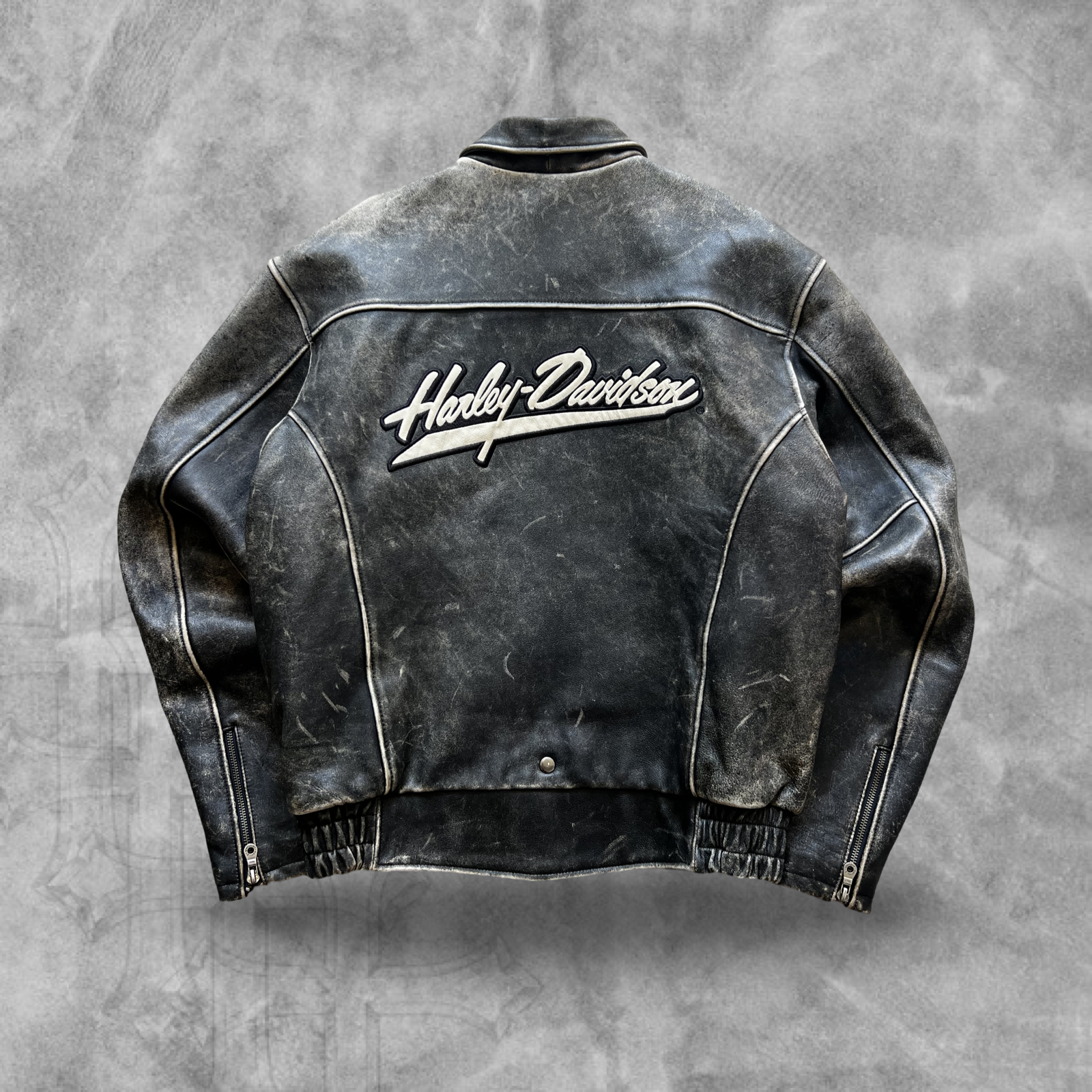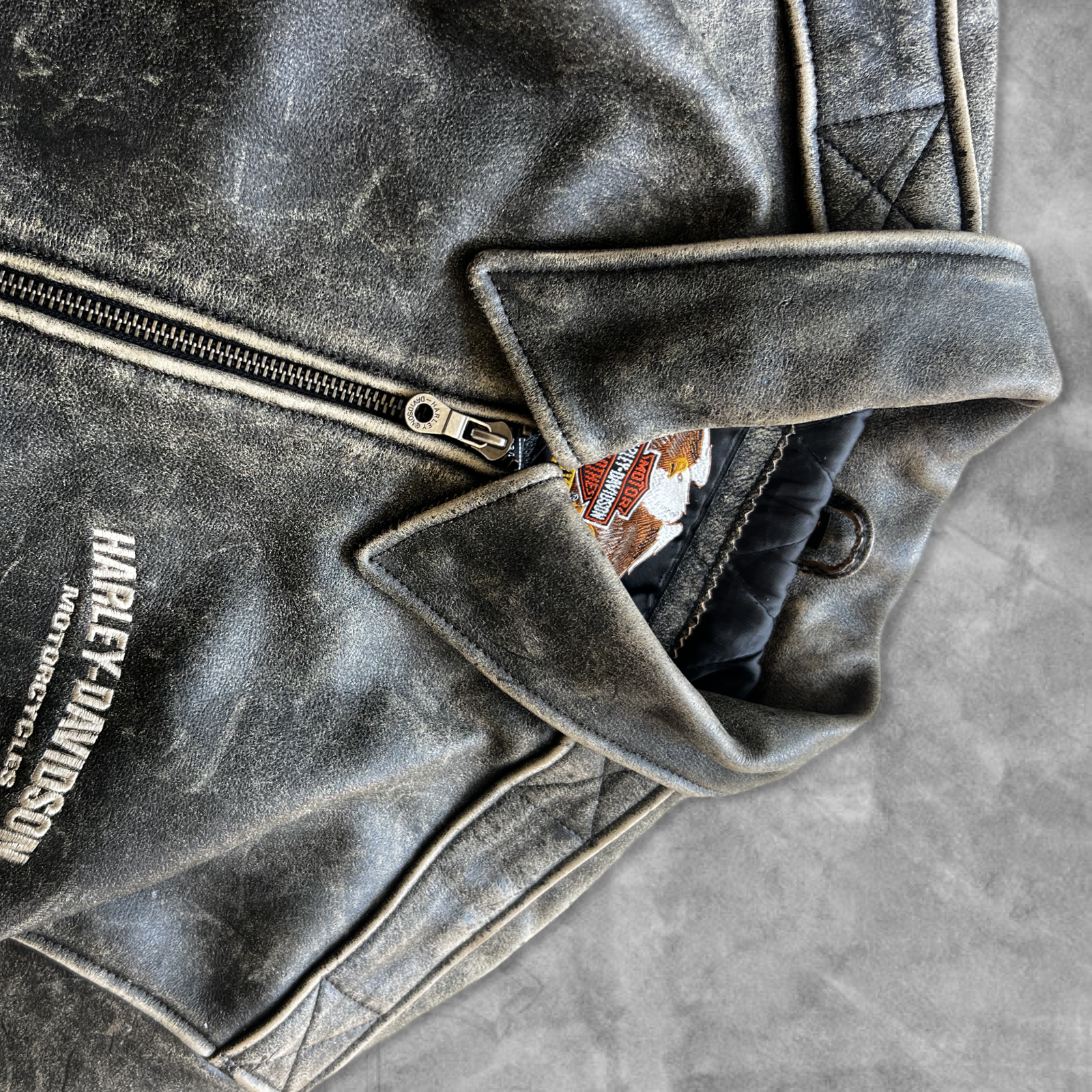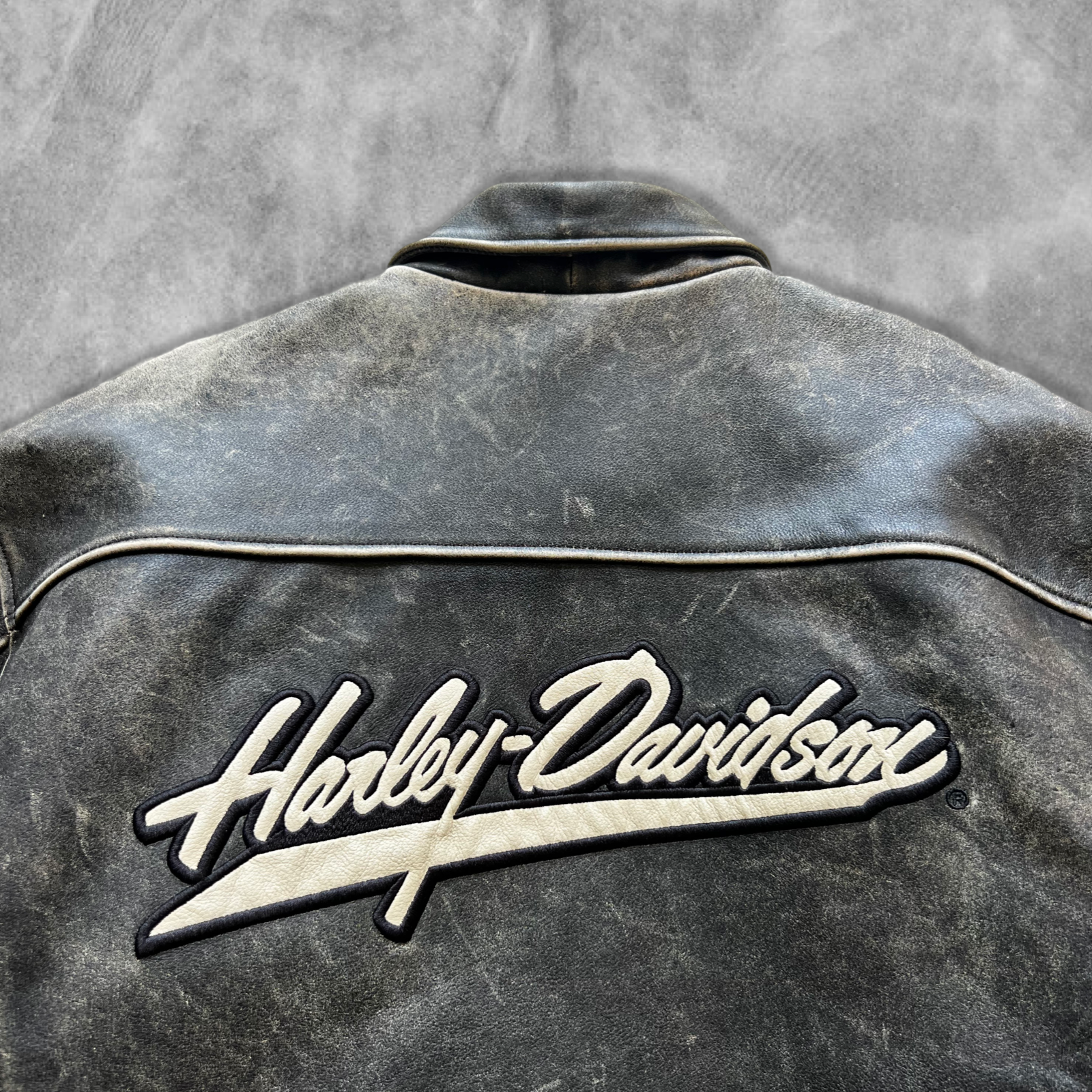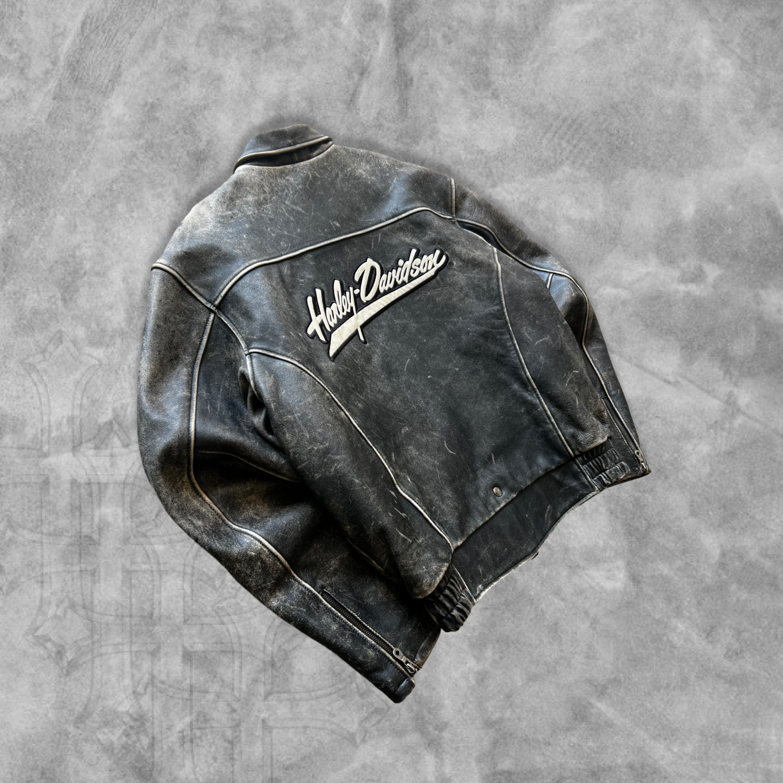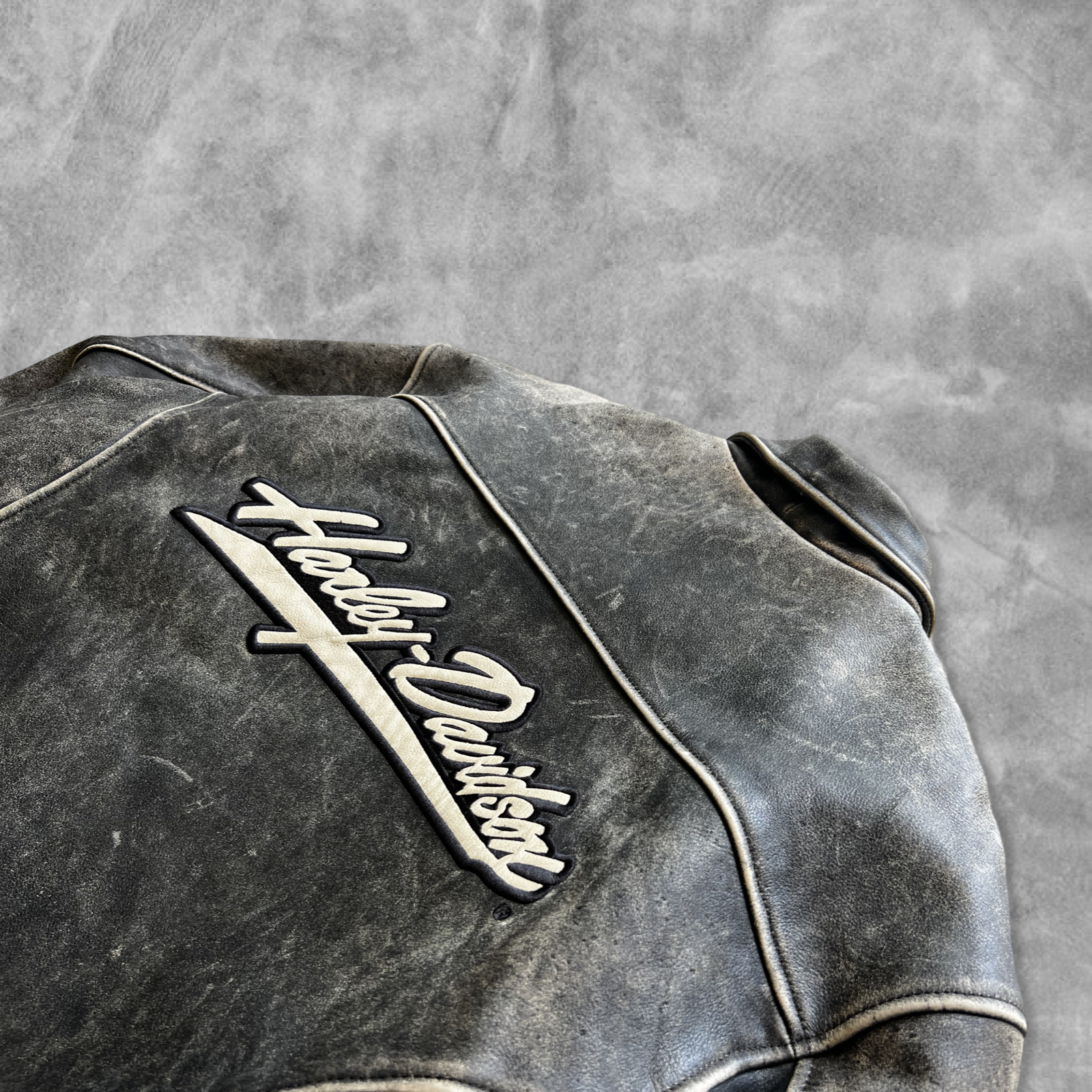 Faded Black Harley Davidson Leather Jacket 1990s (L)
