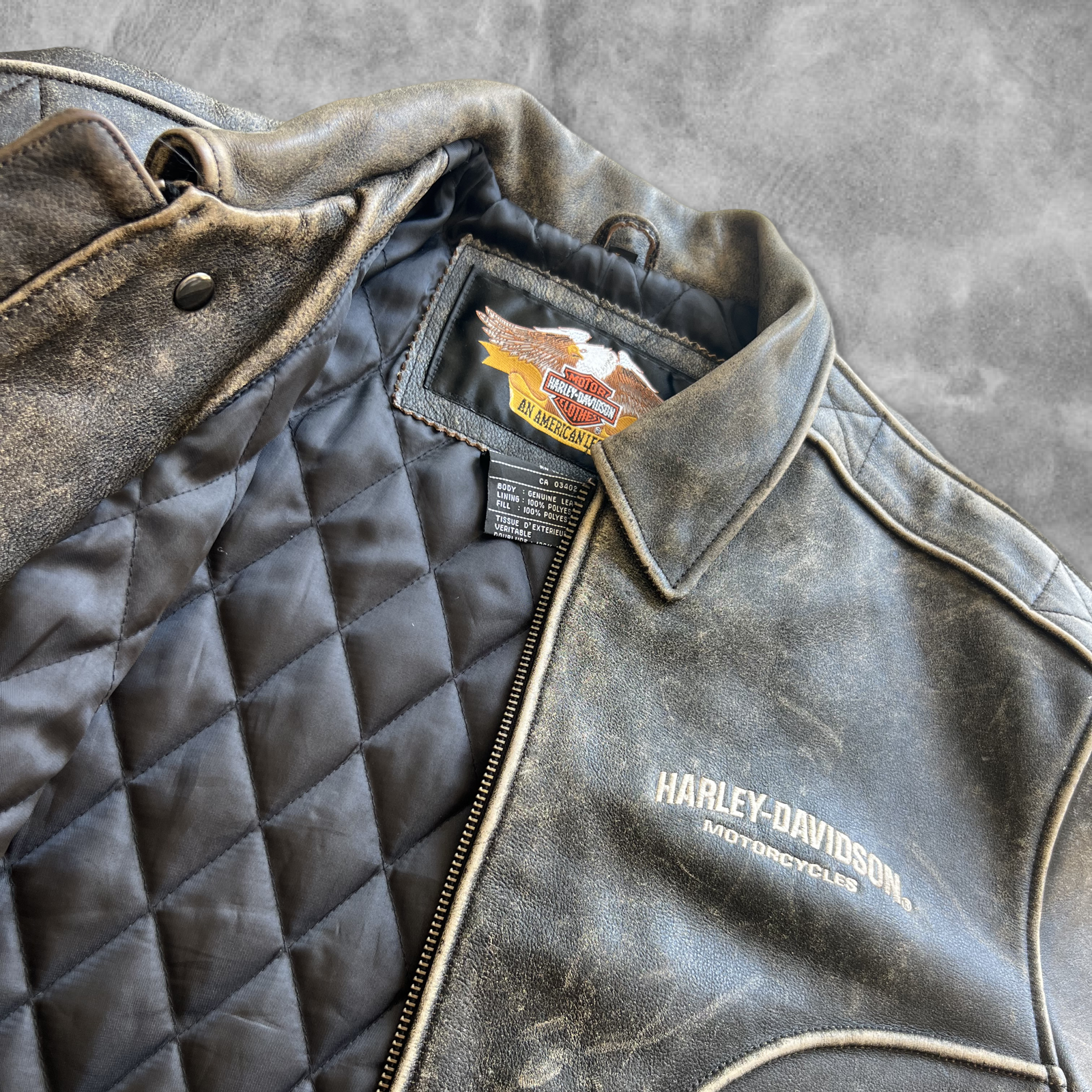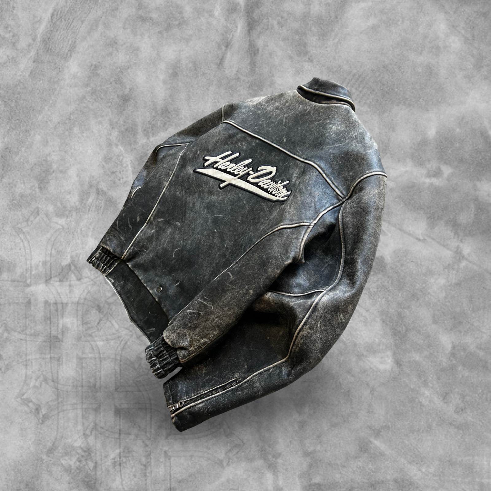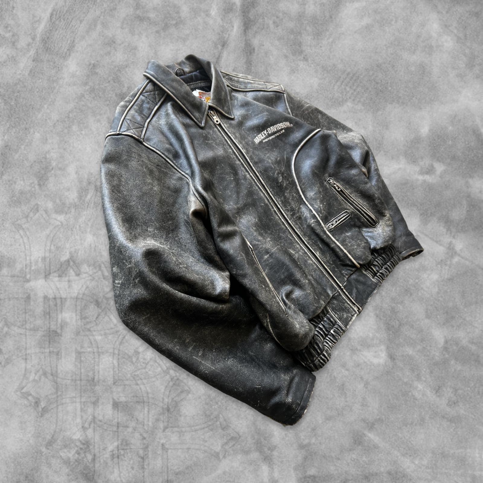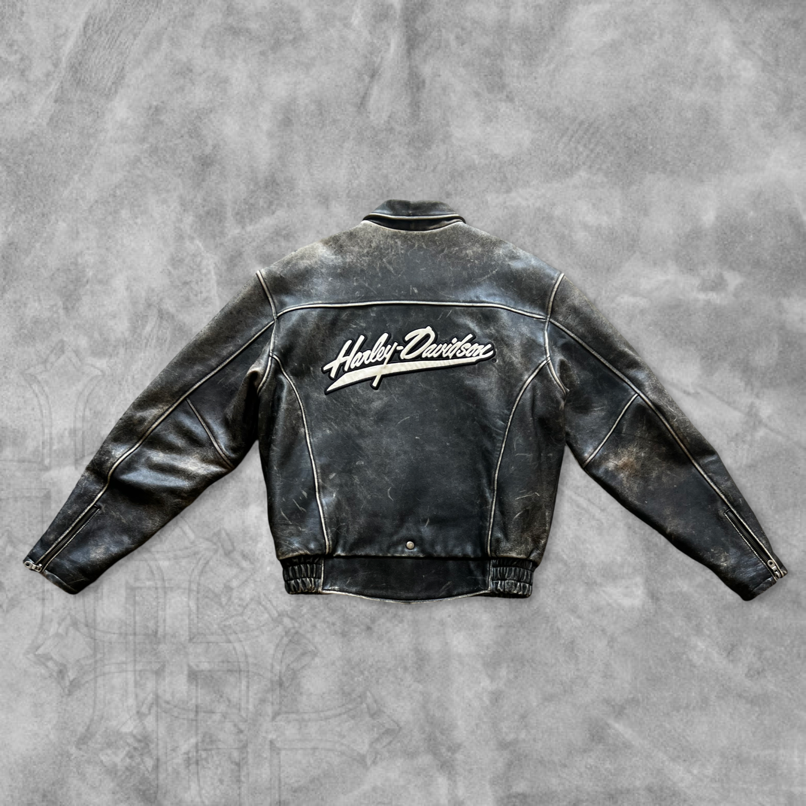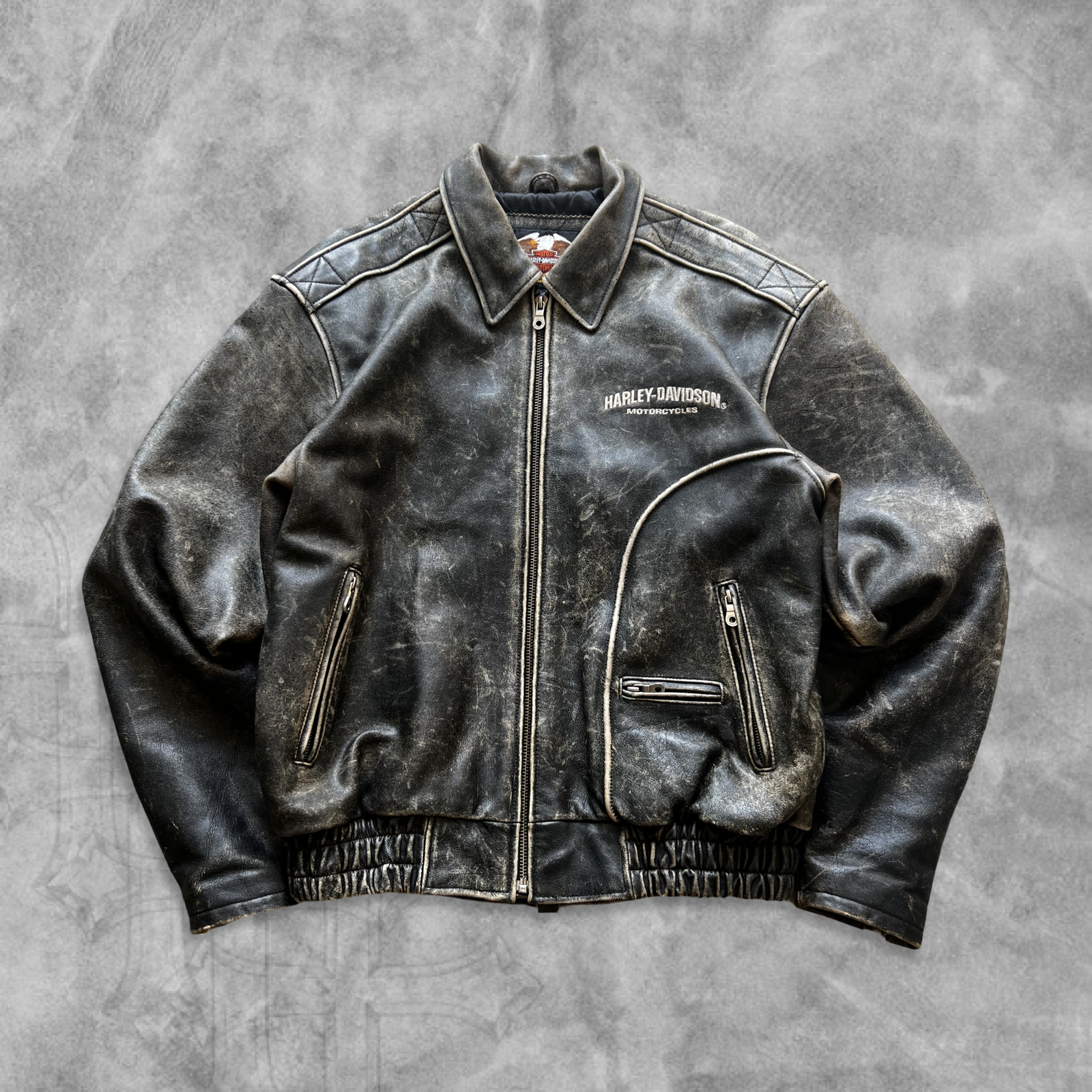 Faded Black Harley Davidson Leather Jacket 1990s (L)