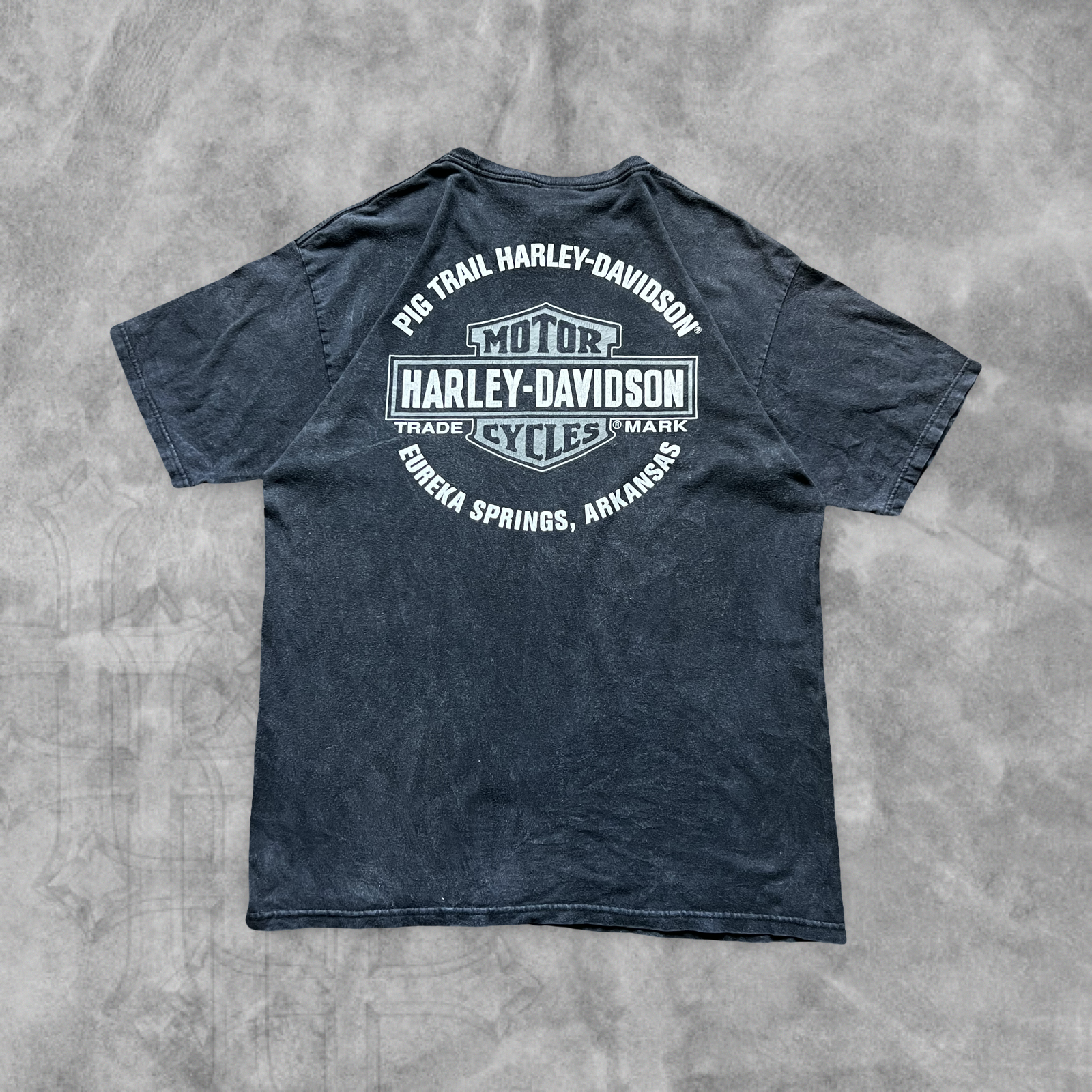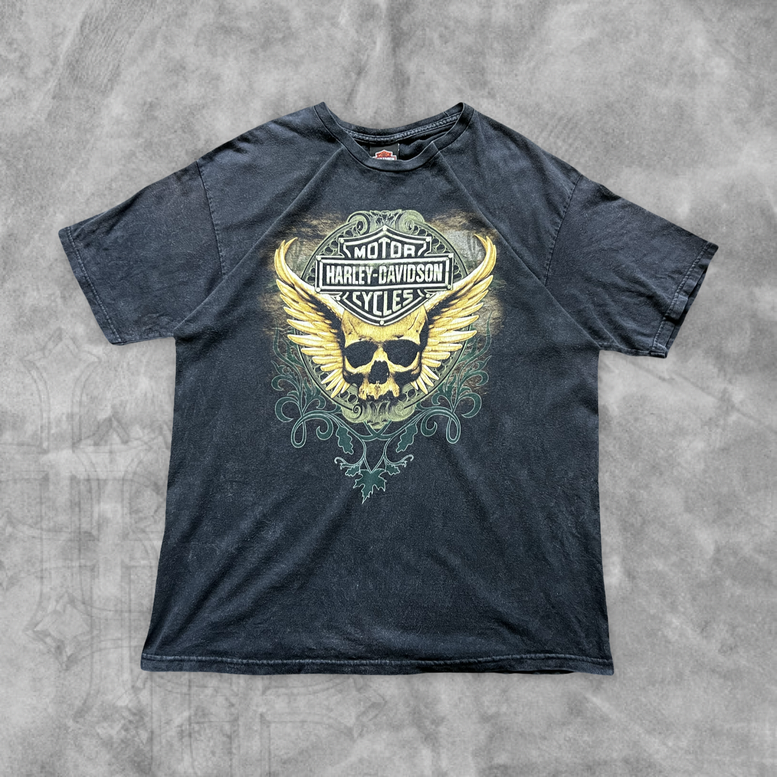 Faded Black Long Horn Skull Harley Davidson Shirt 2000s (M)