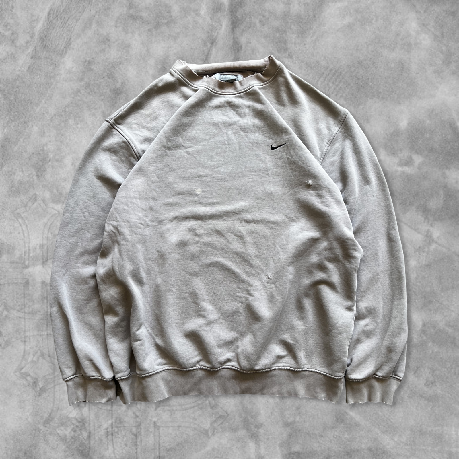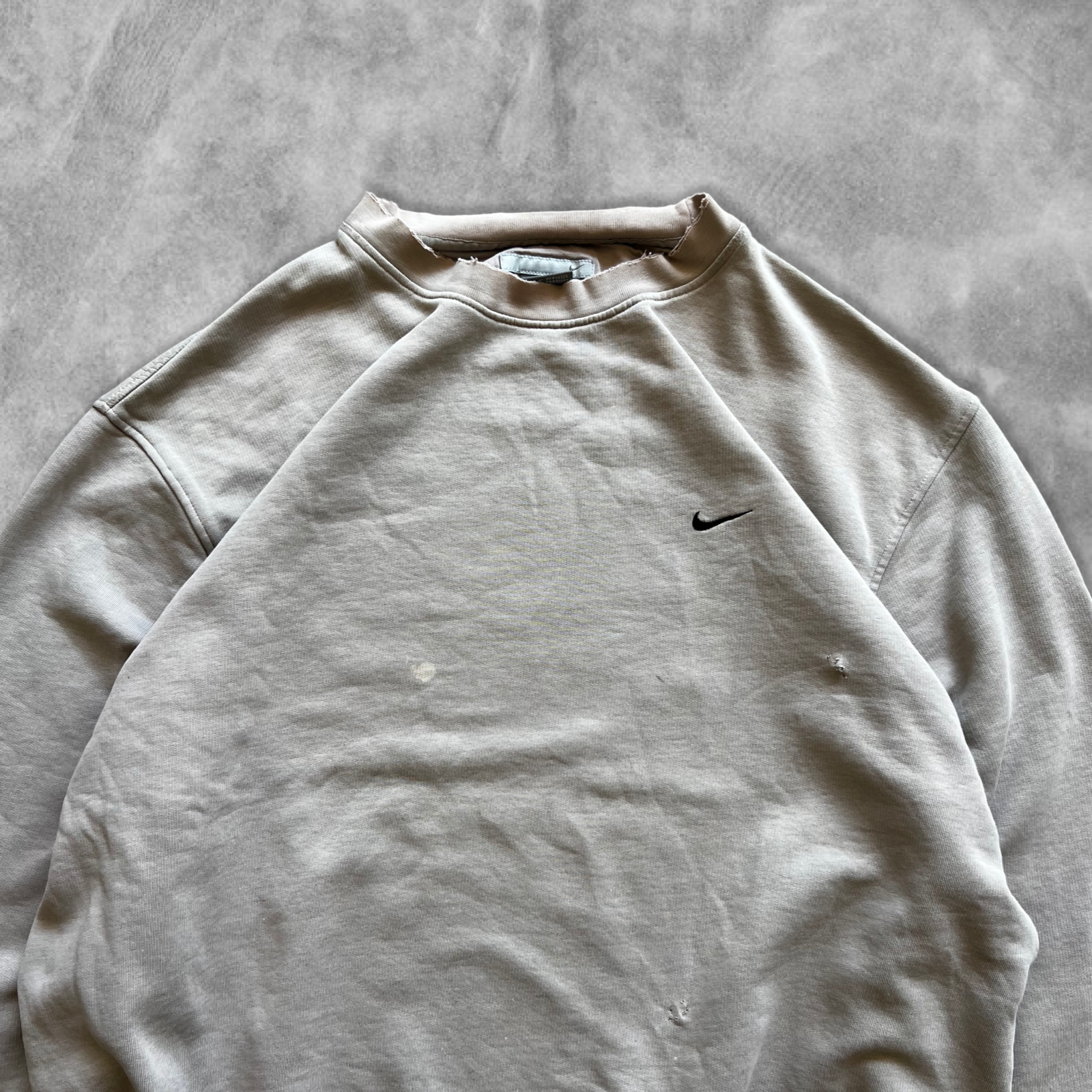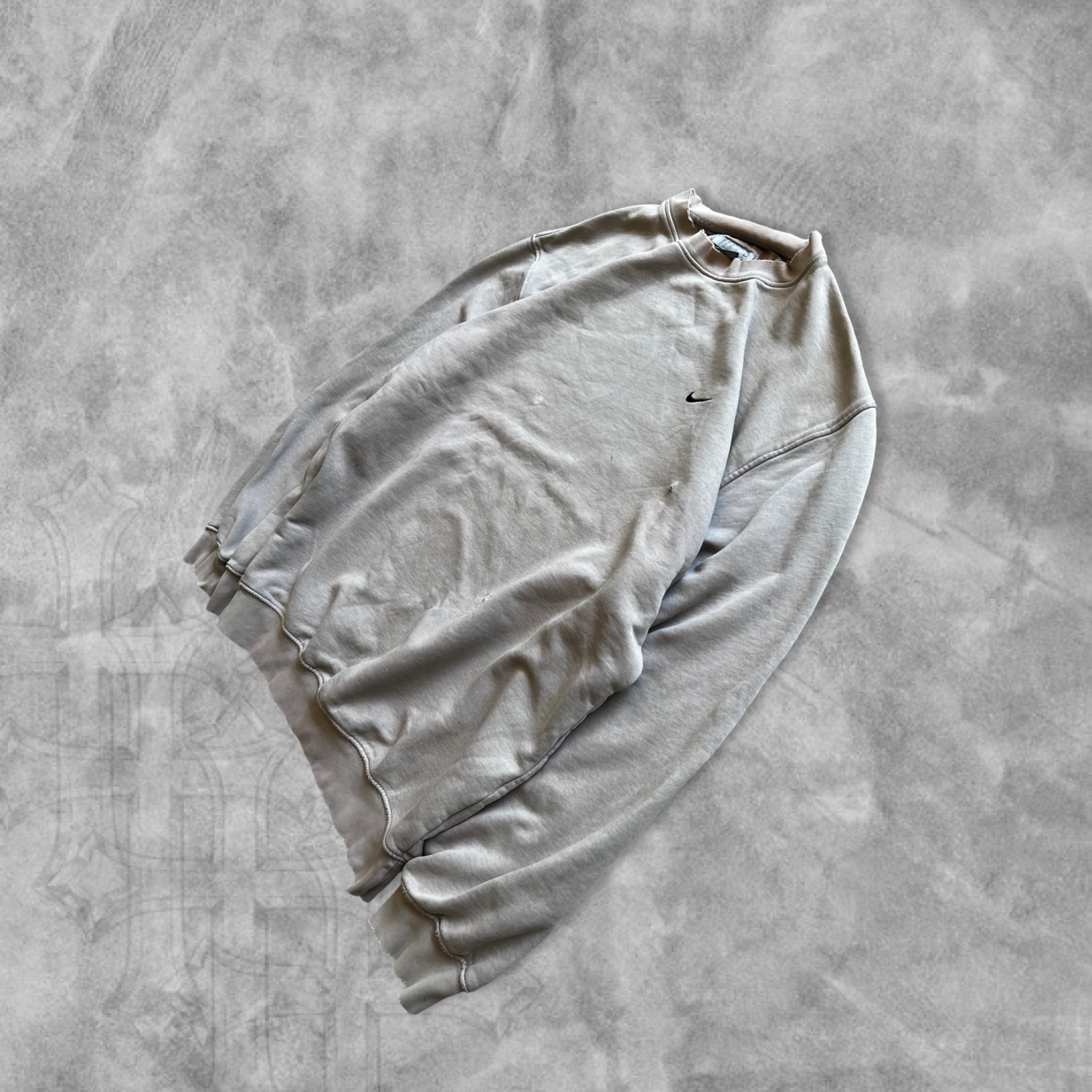 Faded Distressed Cream Nike Essential Sweatshirt 2000s (XXL)