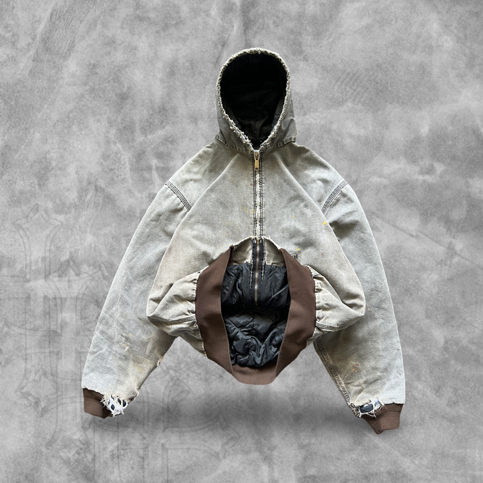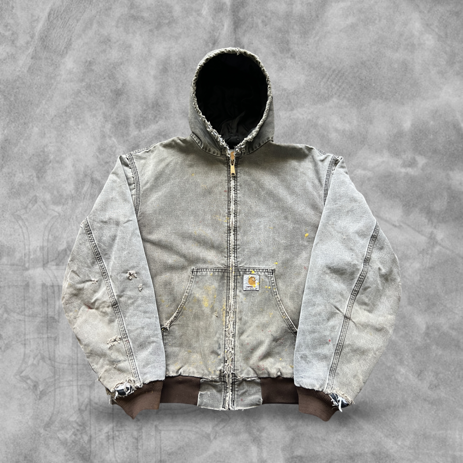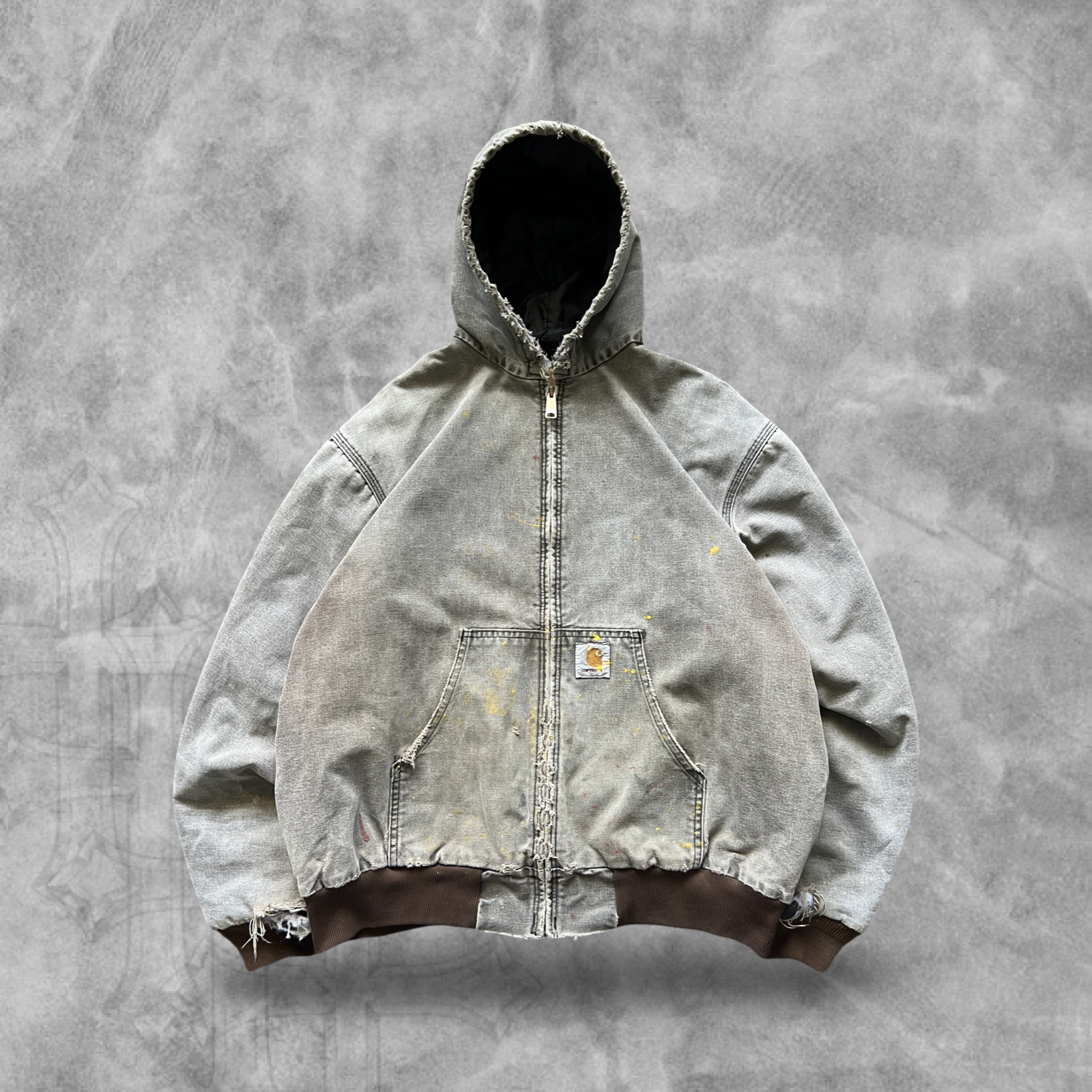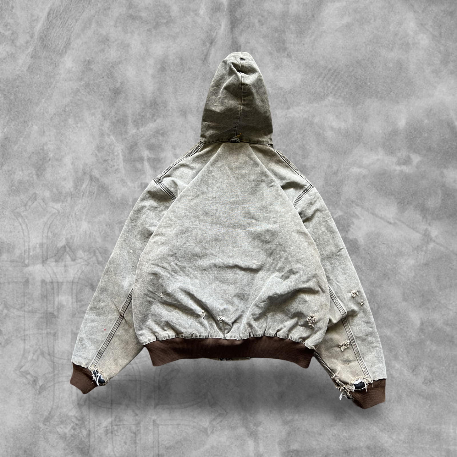 Faded Distressed Mocha Brown Hooded Carhartt Jacket 1990s (L)