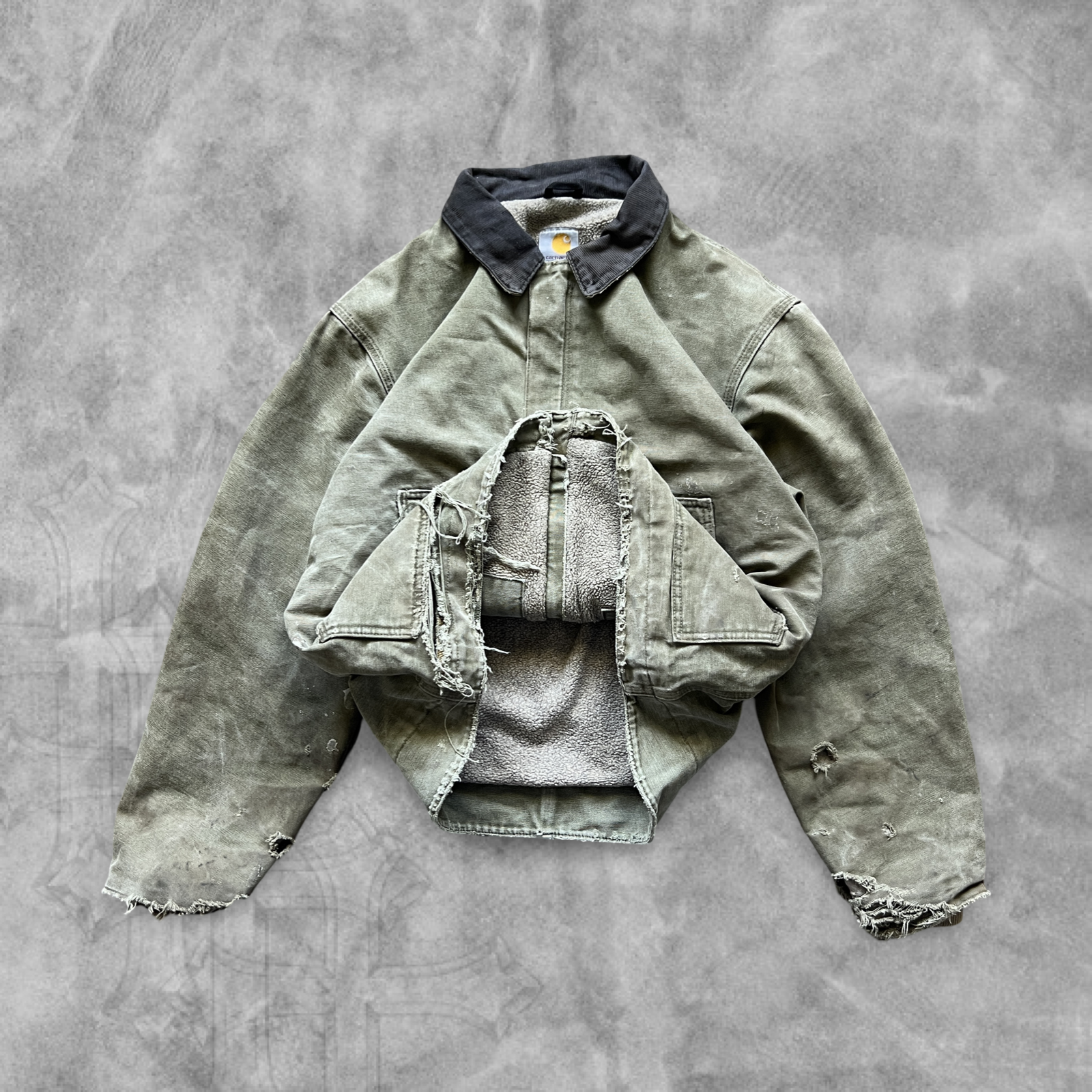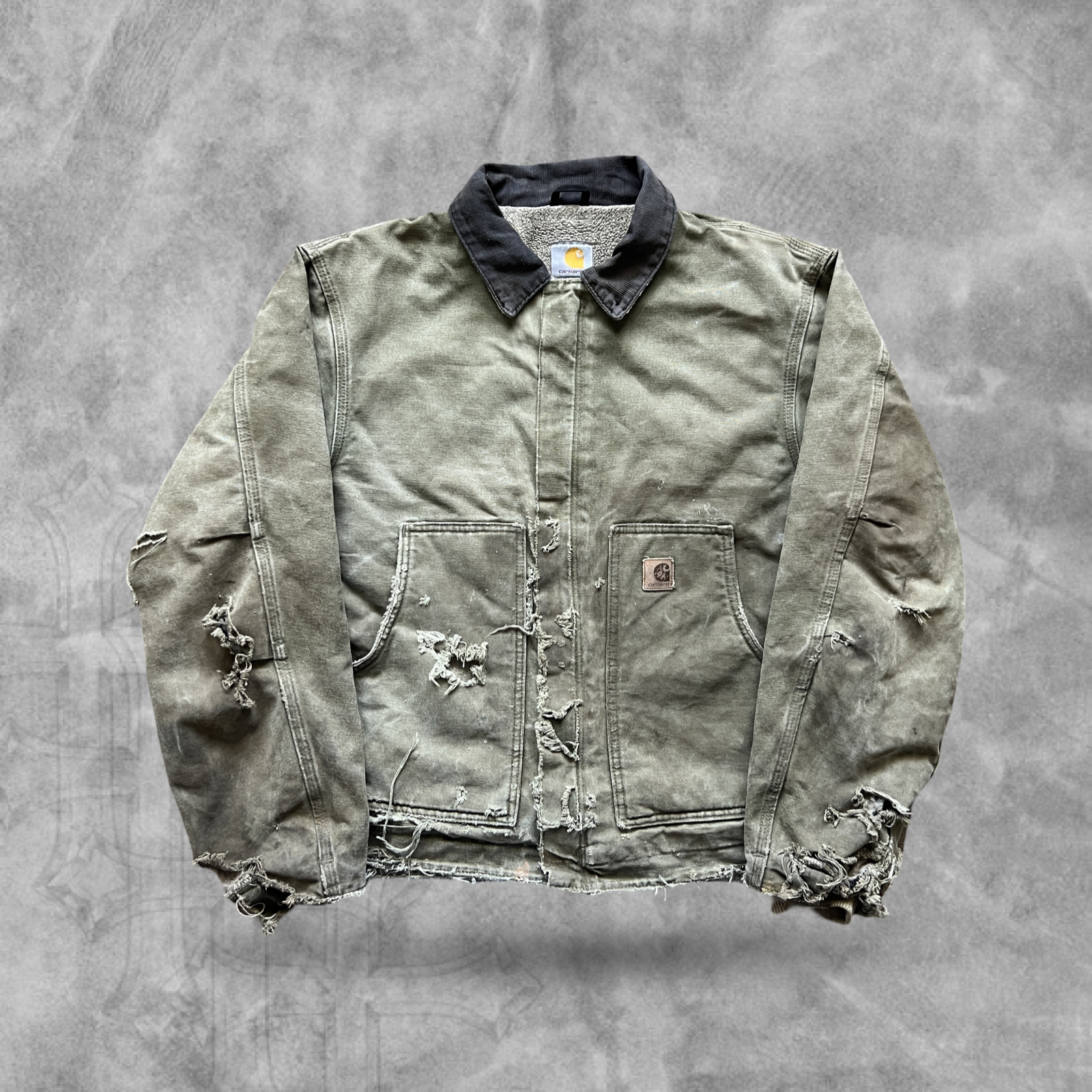 Faded Distressed Olive Green Carhartt Sherpa Lined Barn Jacket 2000s (L)