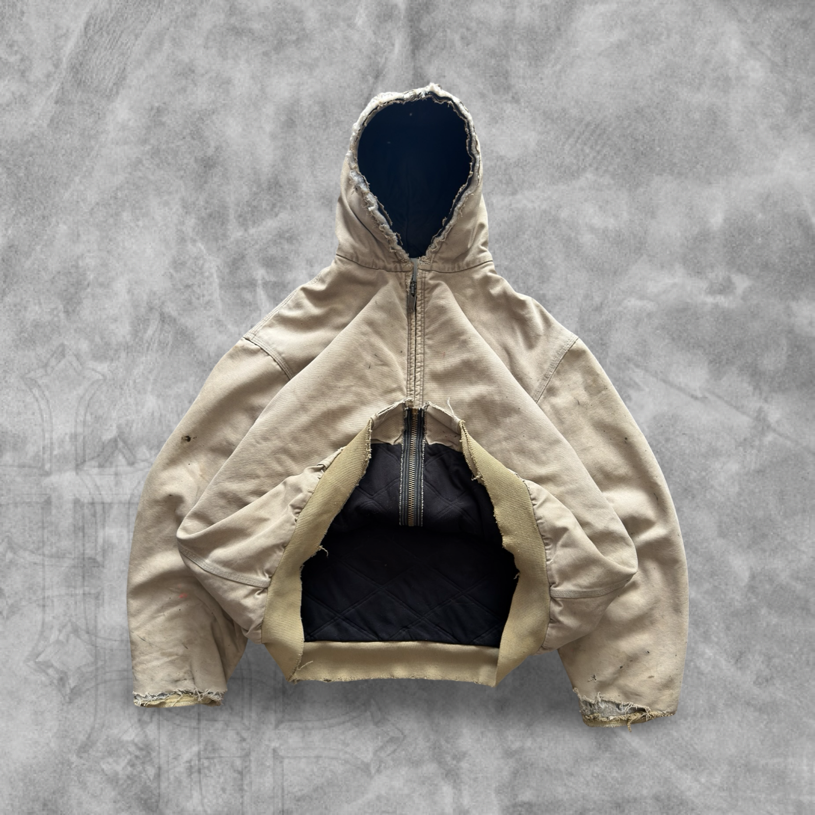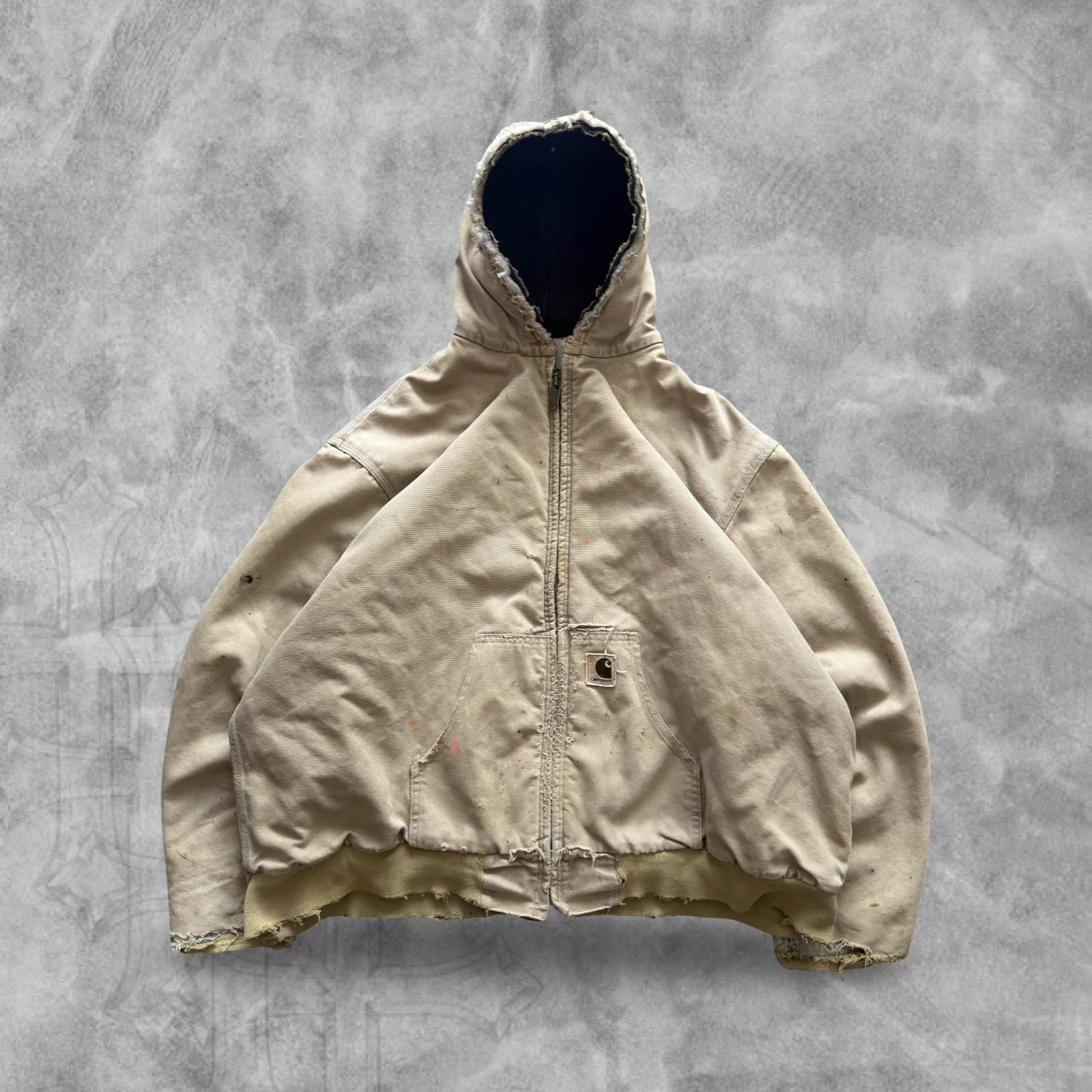 Faded Distressed Tan Carhartt Hooded Jacket 1990s (XXL)