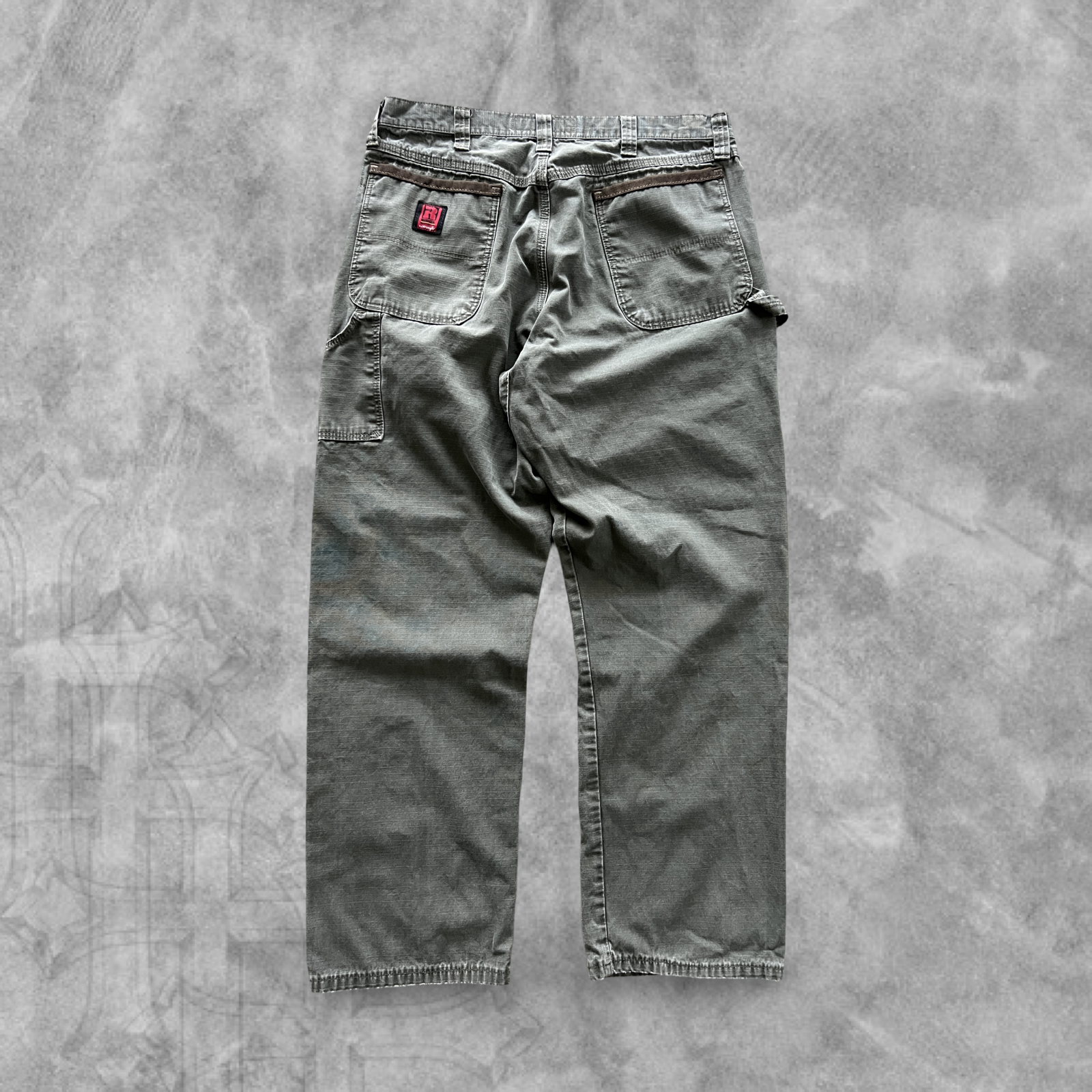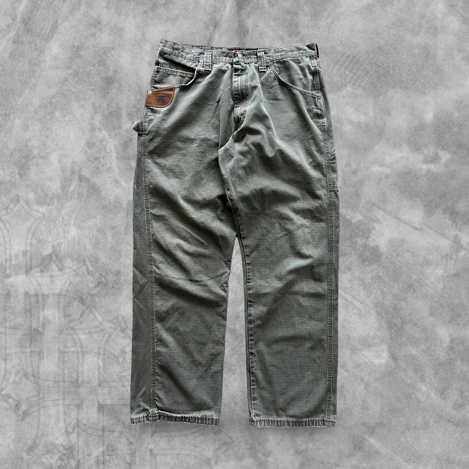 Faded Olive Green Wrangler Riggs Carpenter Pants 2000s (36x32)