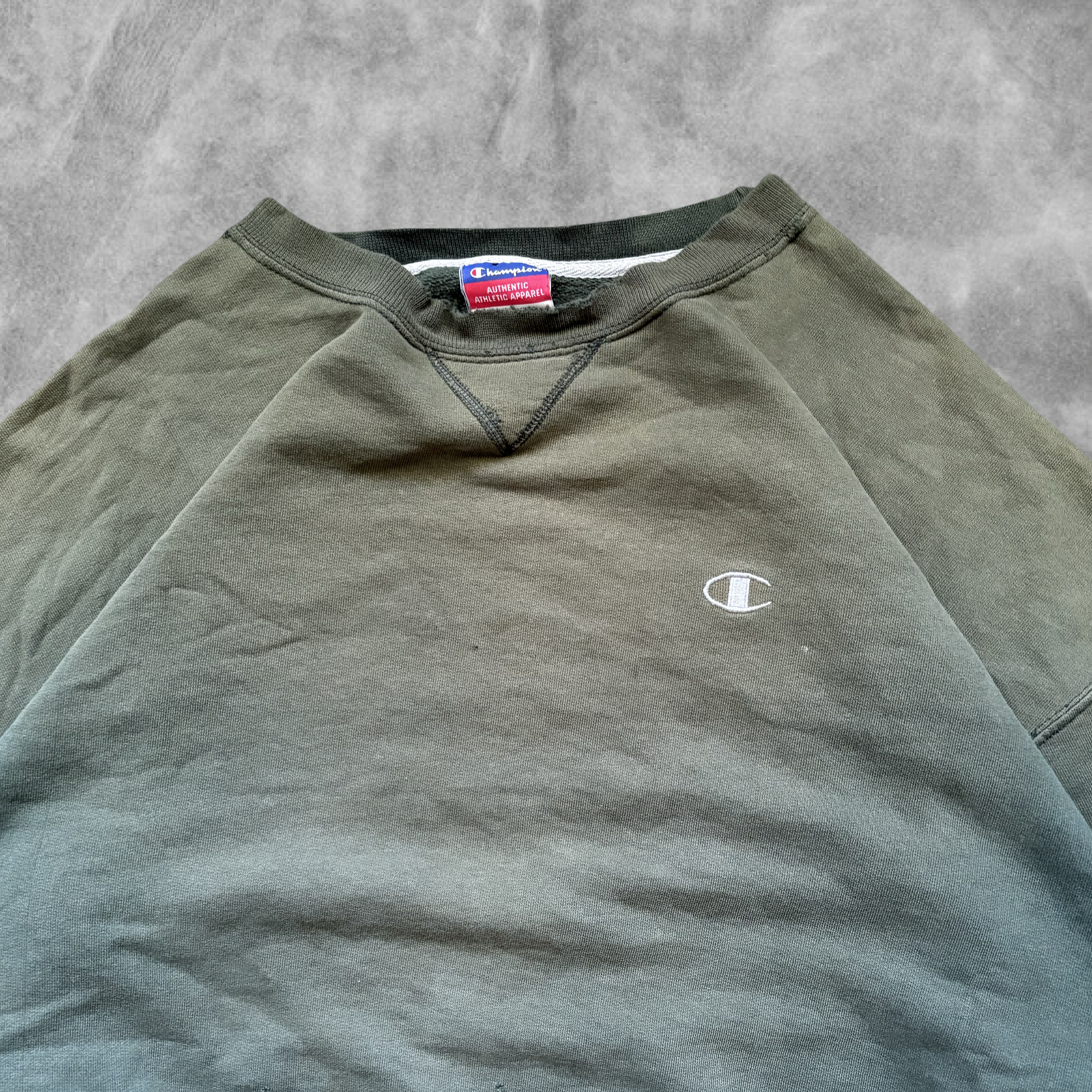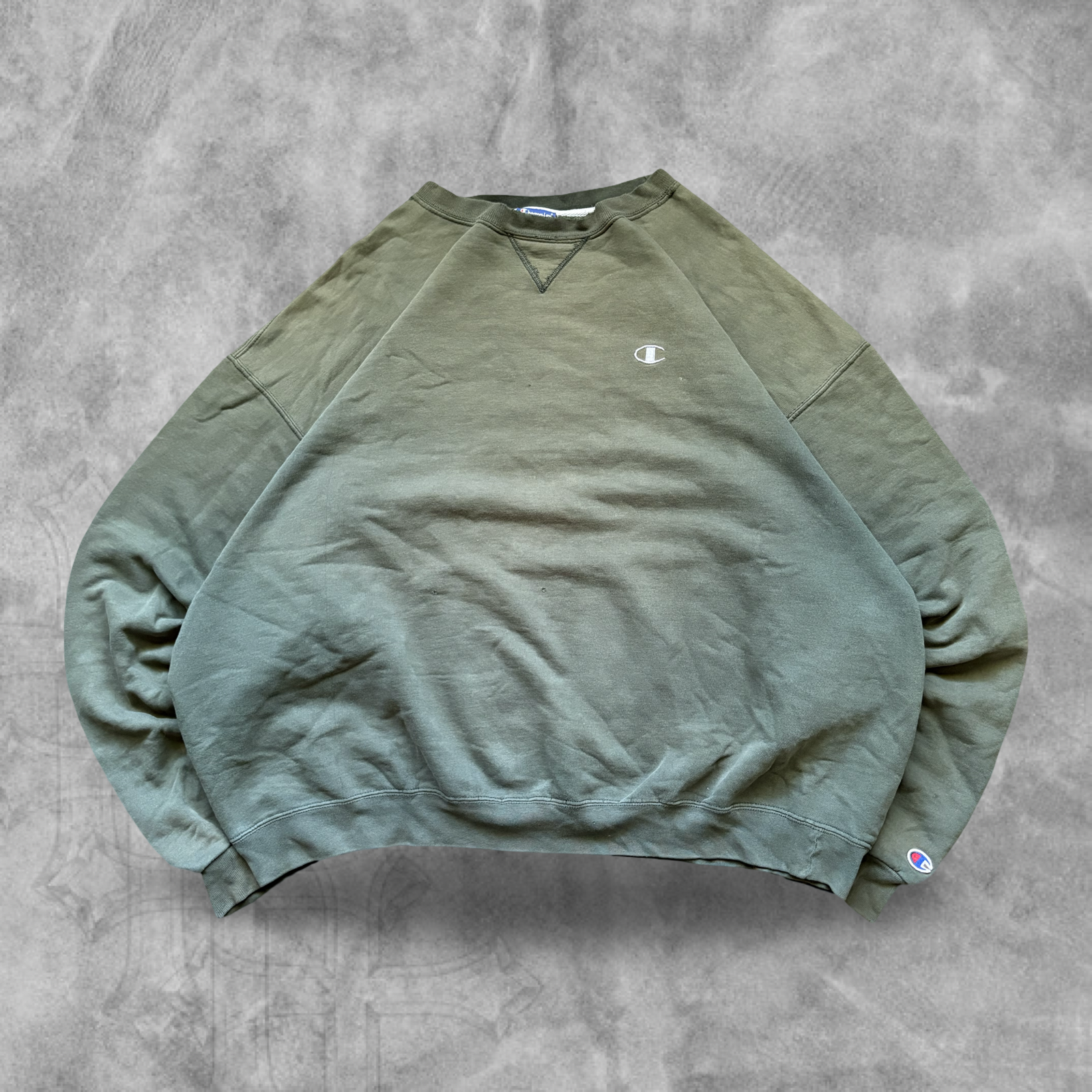 Faded Distressed Olive Green Champion Sweatshirt 2000s (XL)