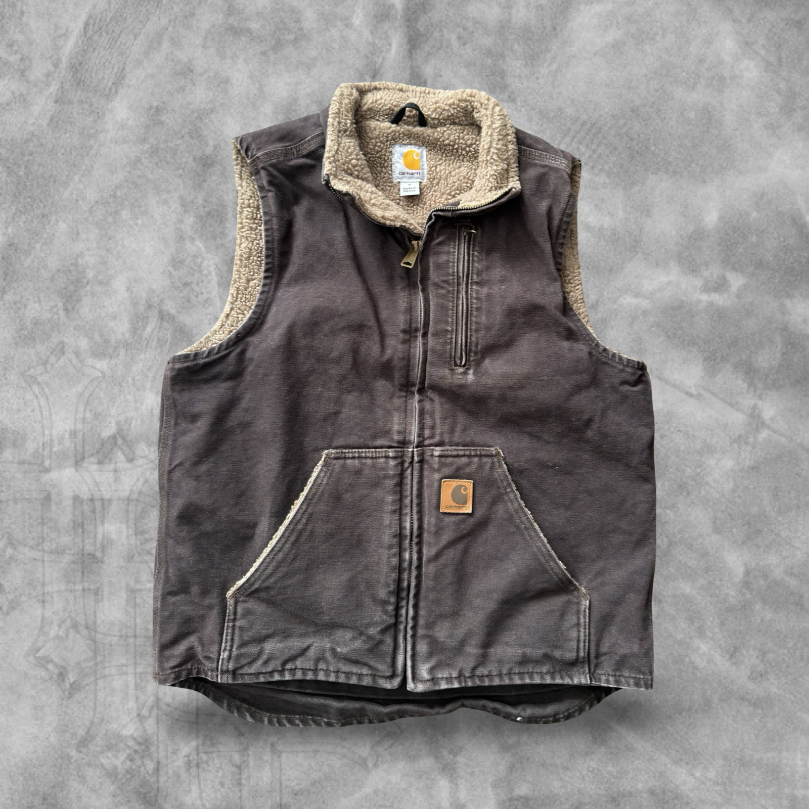 Mocha Brown Sherpa Lined Carhartt Vest 2000s (S)