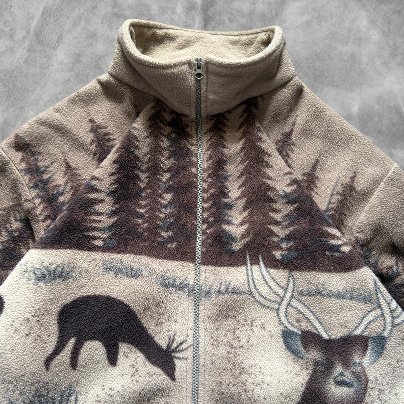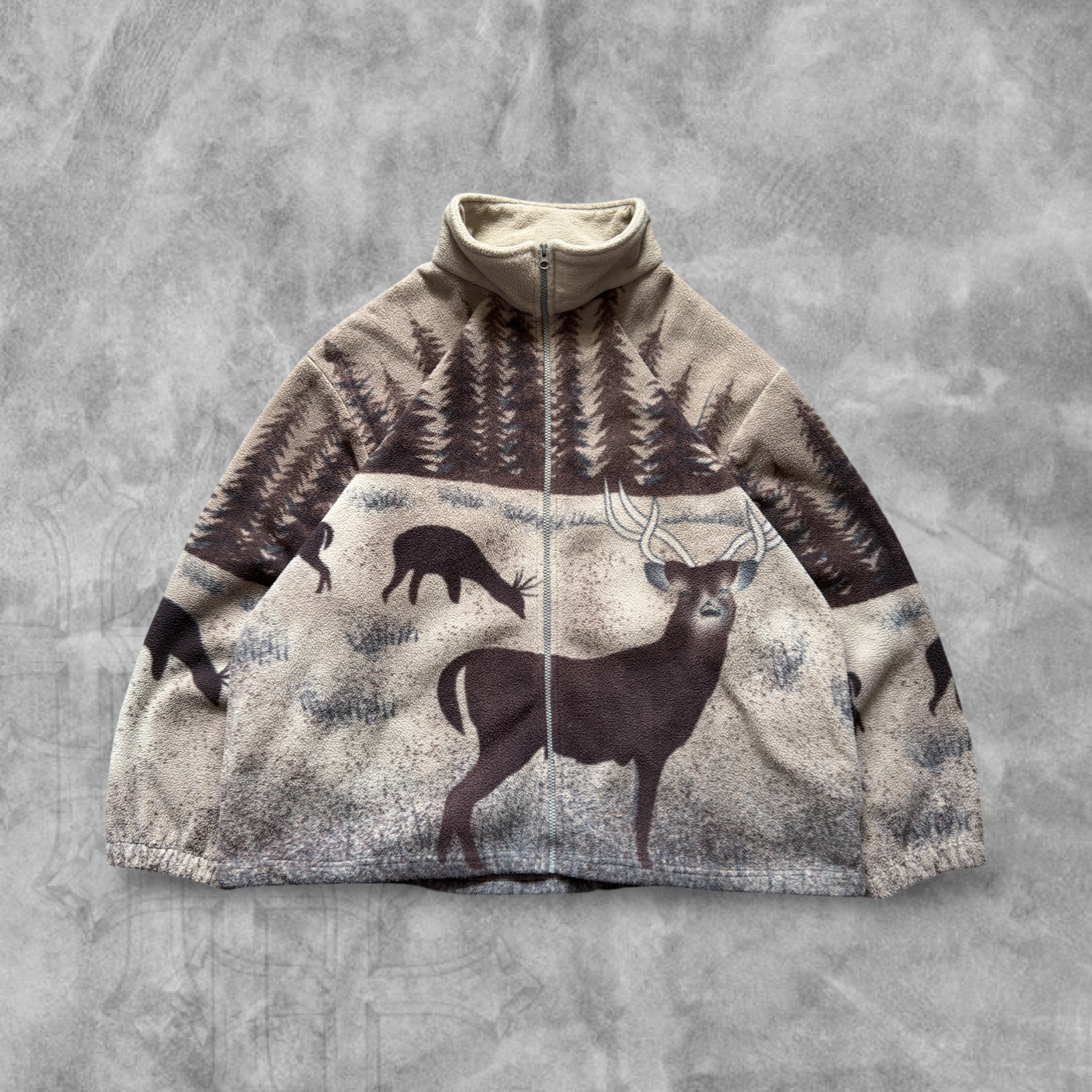 Multicolored Deer Nature All Over Print Jacket 1990s (XL)