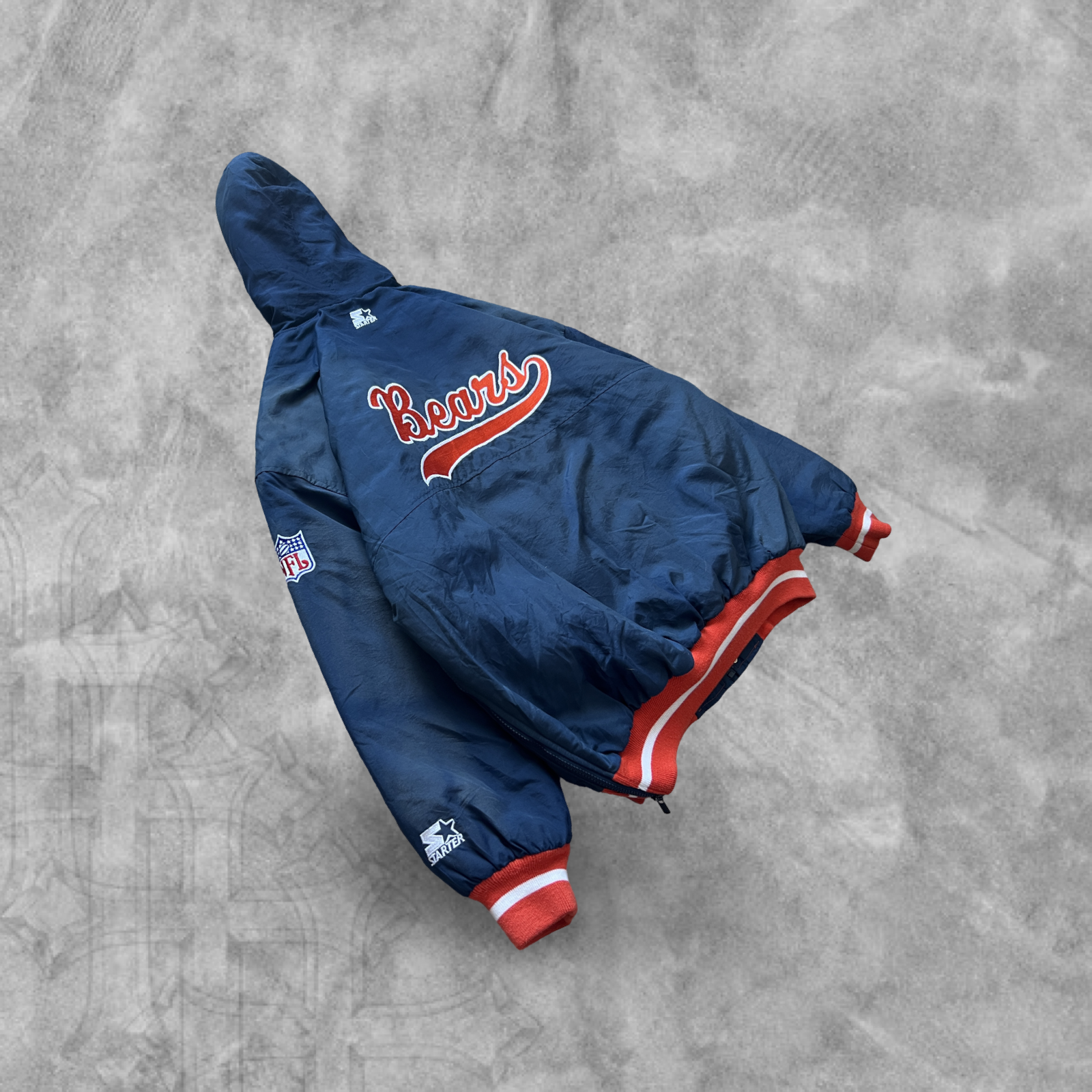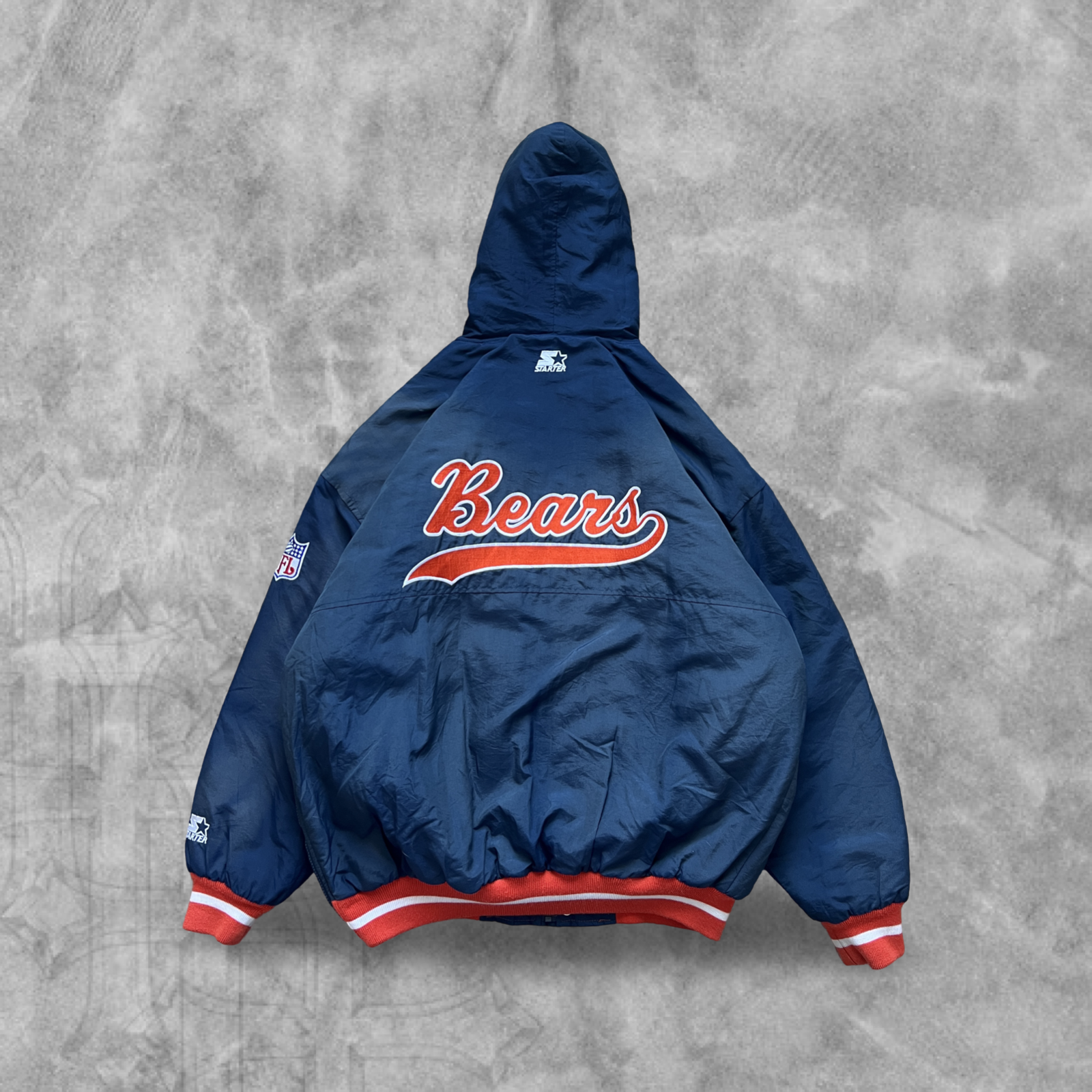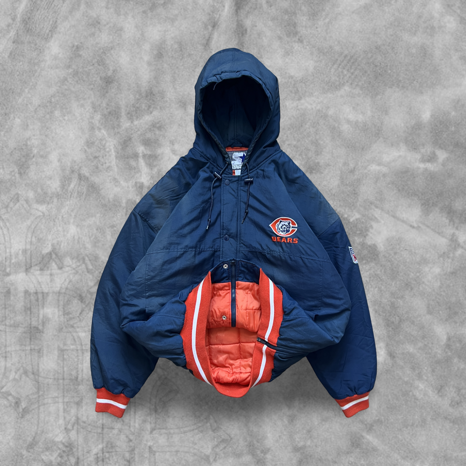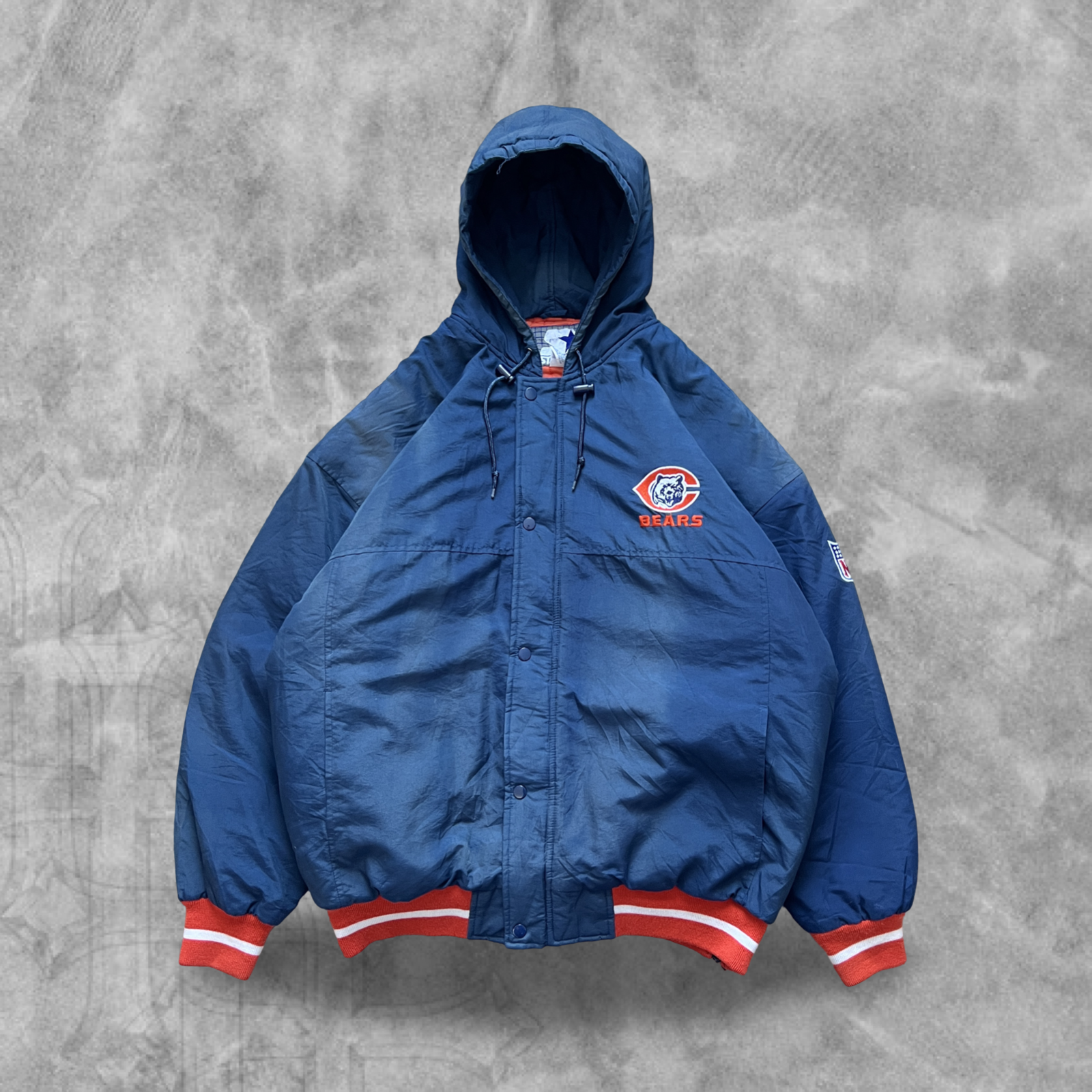 Navy Blue Chicago Bears Hooded Puffer Starter Jacket 1990s (XL)
