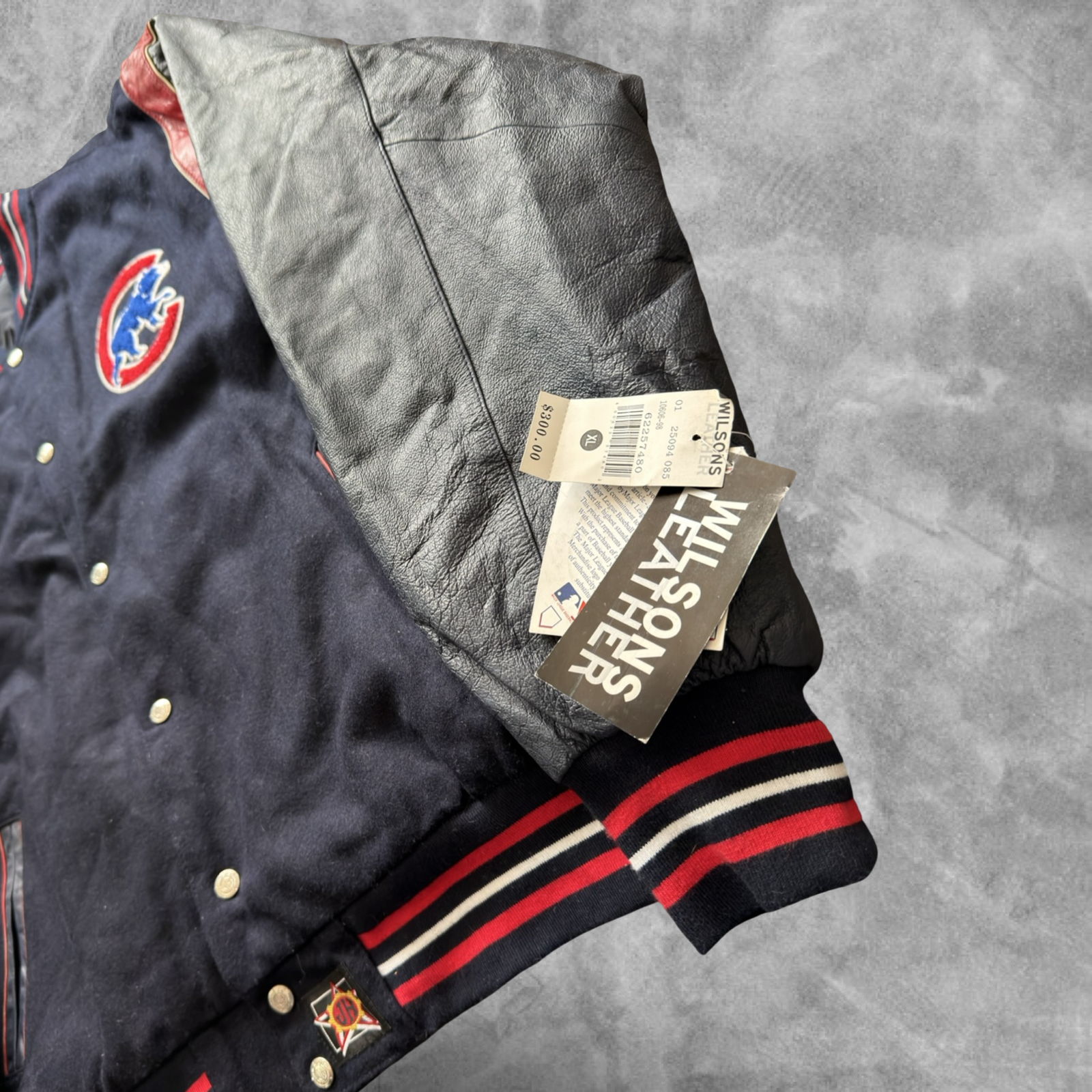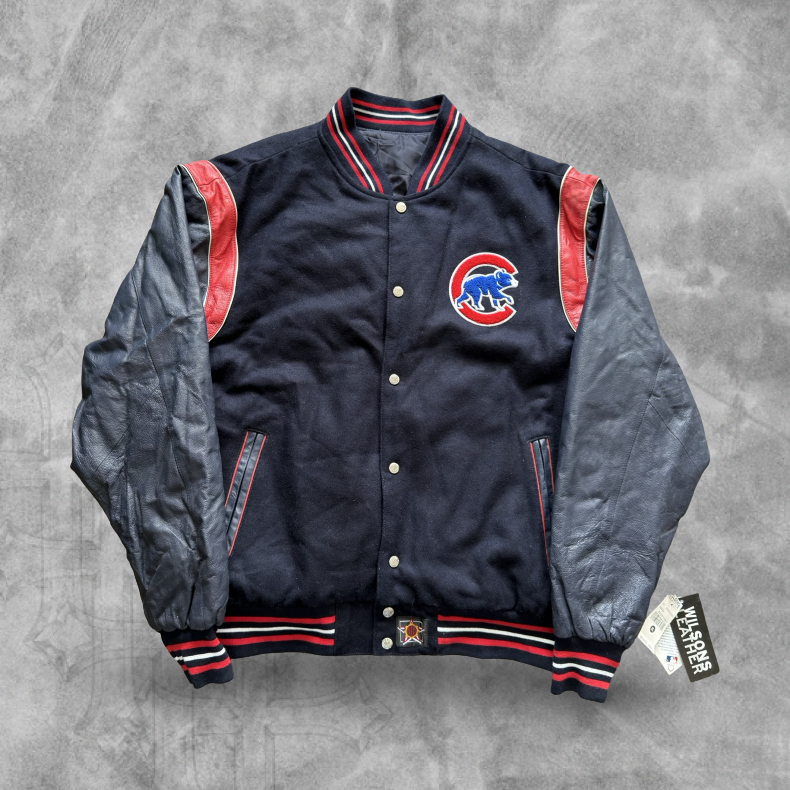 Navy Blue Chicago Cubs Leather Reversible Varsity Jacket 1990s (L)