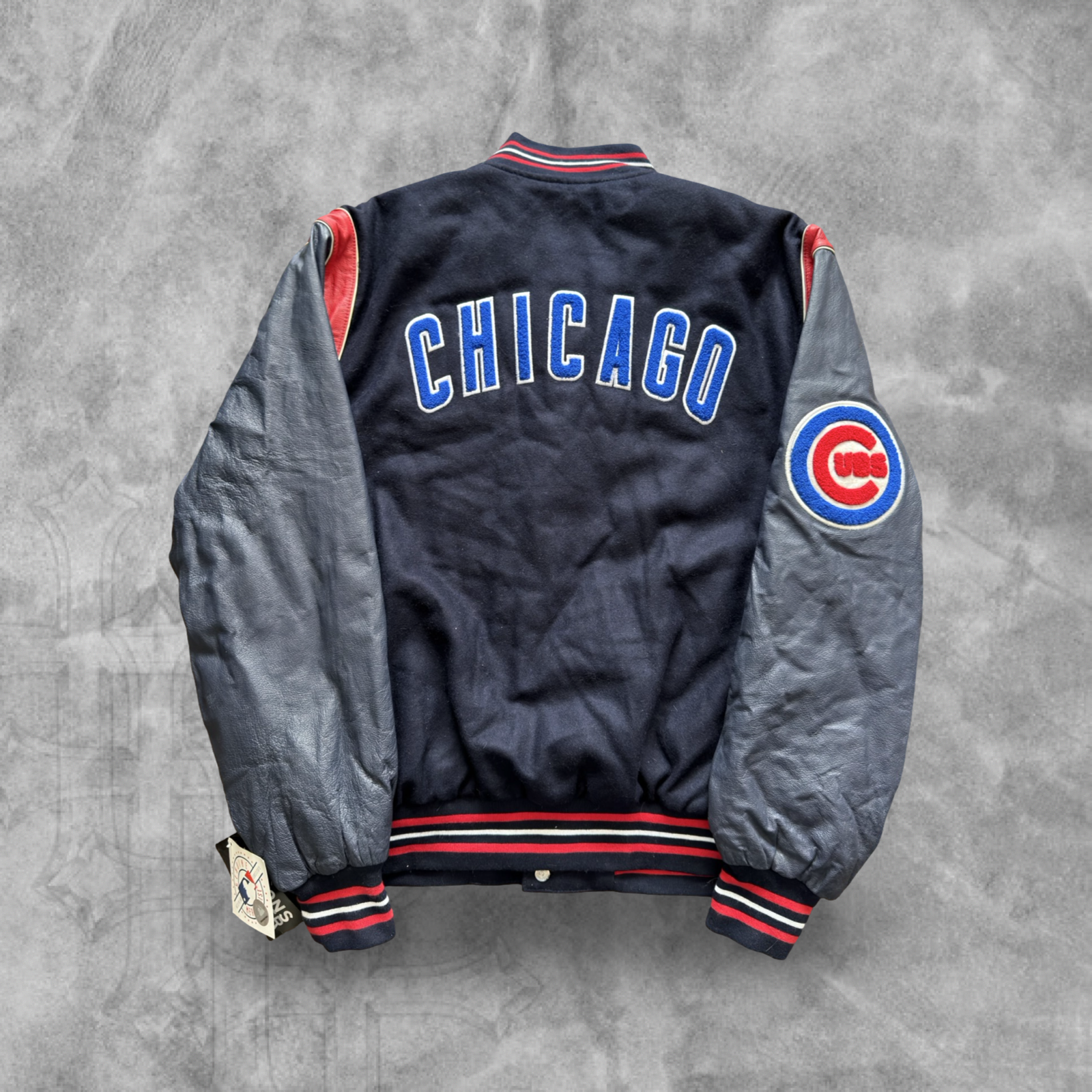 Navy Blue Chicago Cubs Leather Reversible Varsity Jacket 1990s (XL)