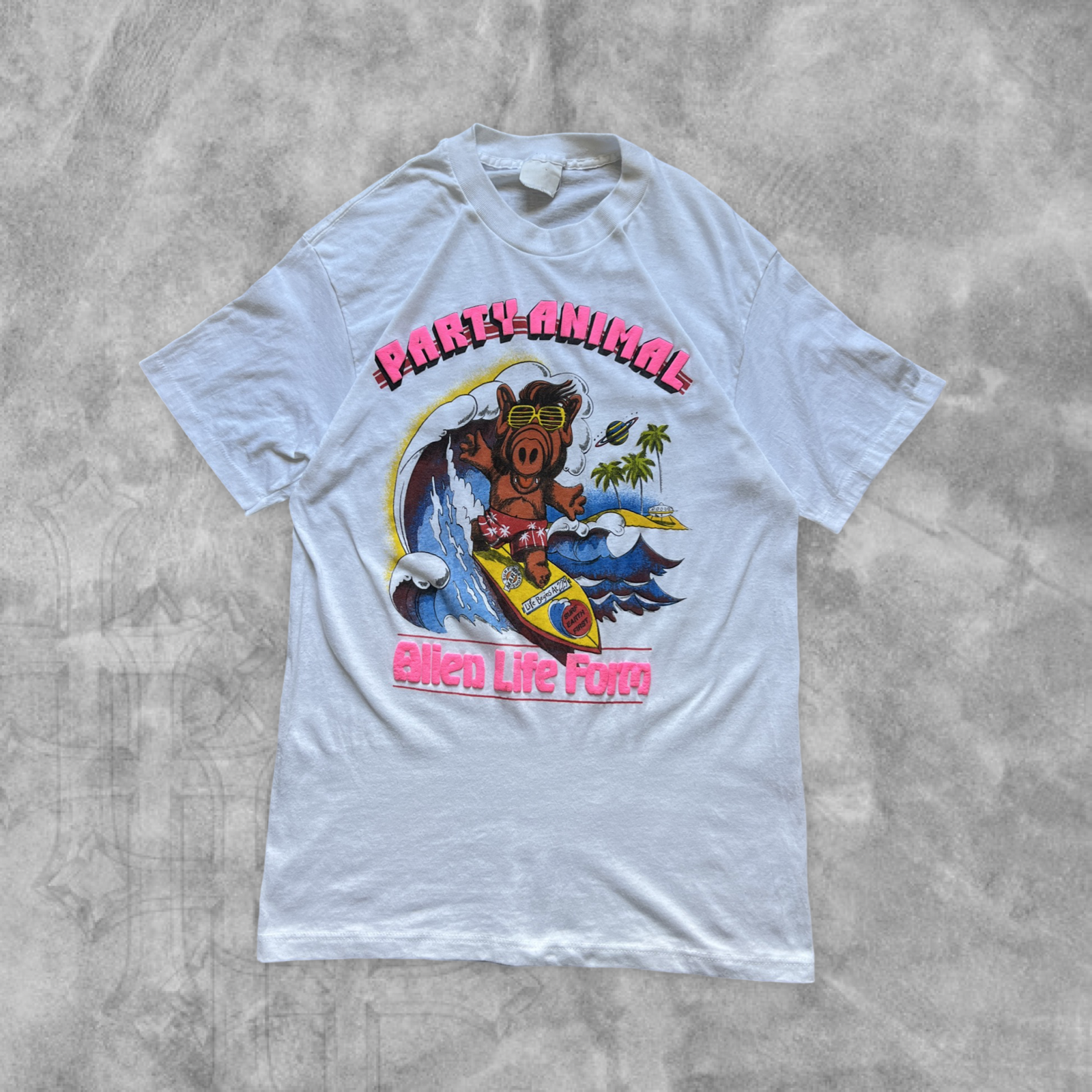 White Alf Party Animal Alien Life Form Shirt 1980s (L)