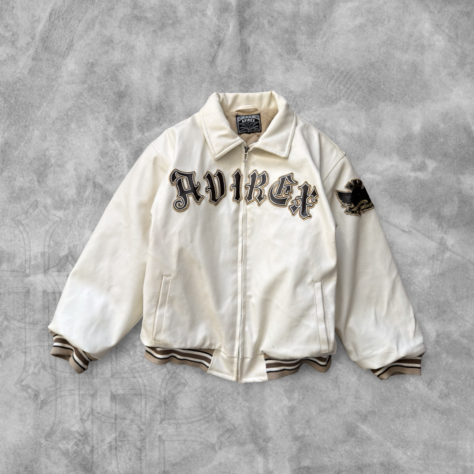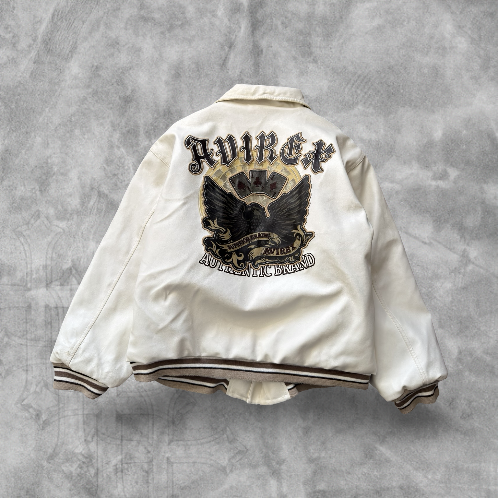 White Avirex Leather Embroidered Bomber Jacket 1990s (S)