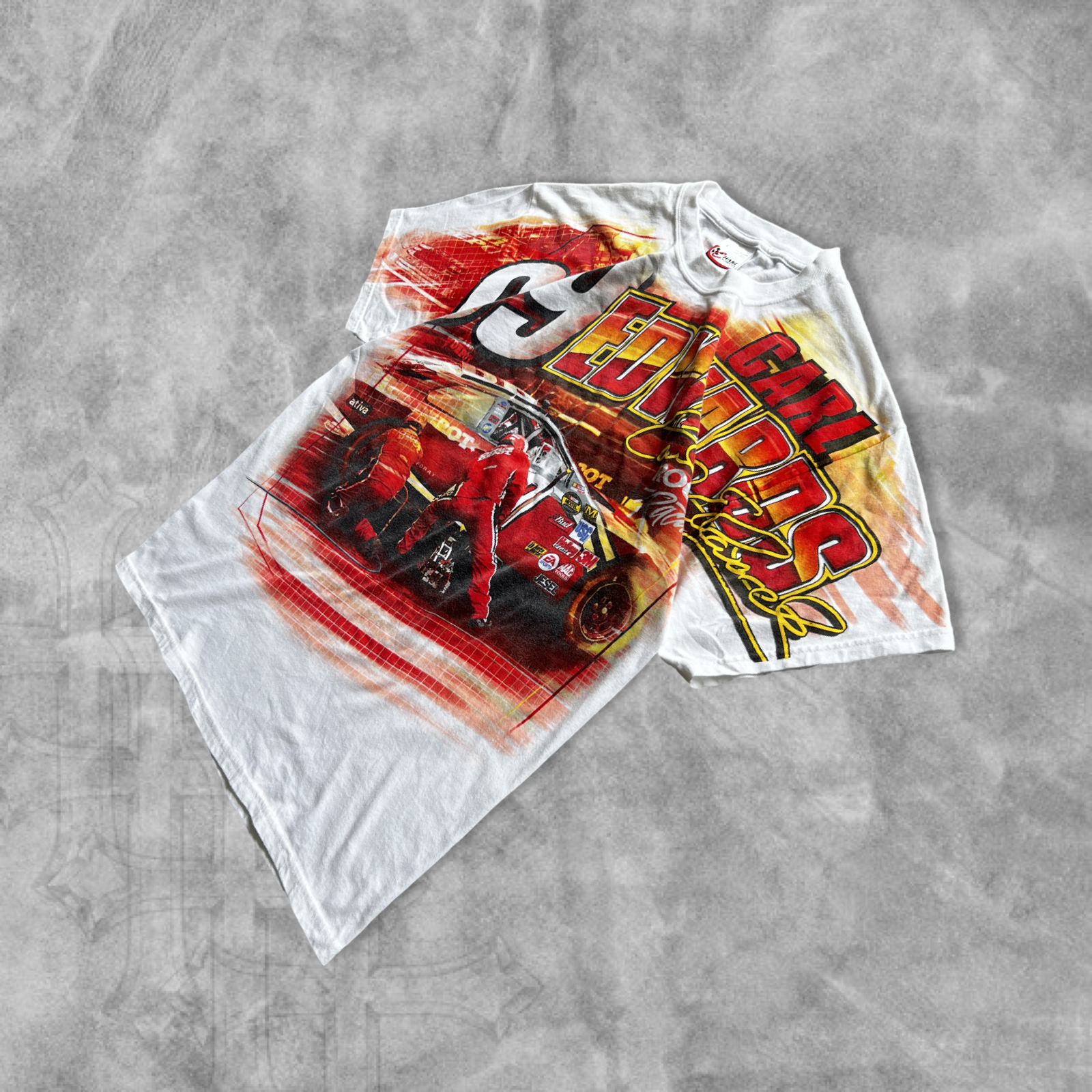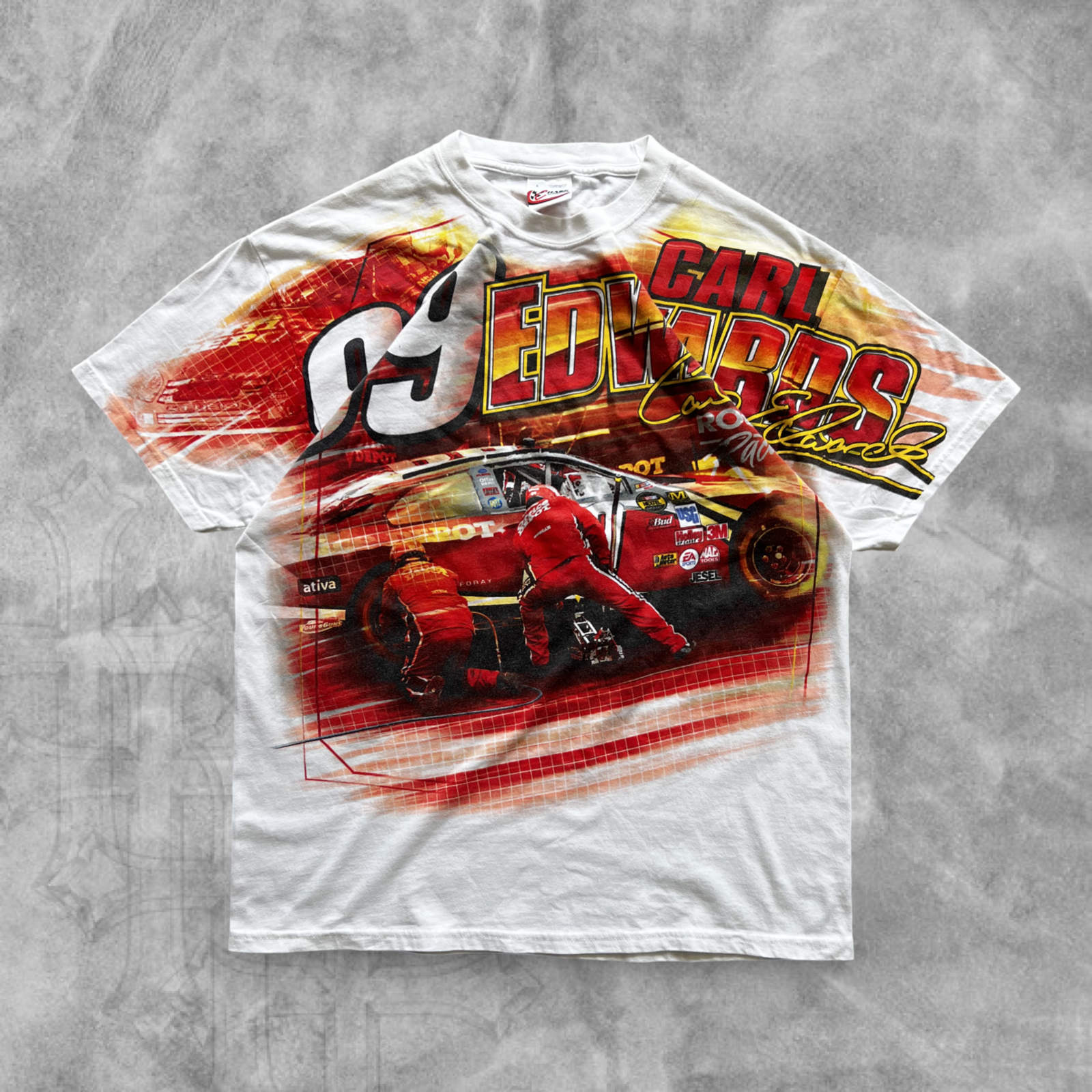 White Carl Edwards Nascar AOP Shirt 2000s (L)