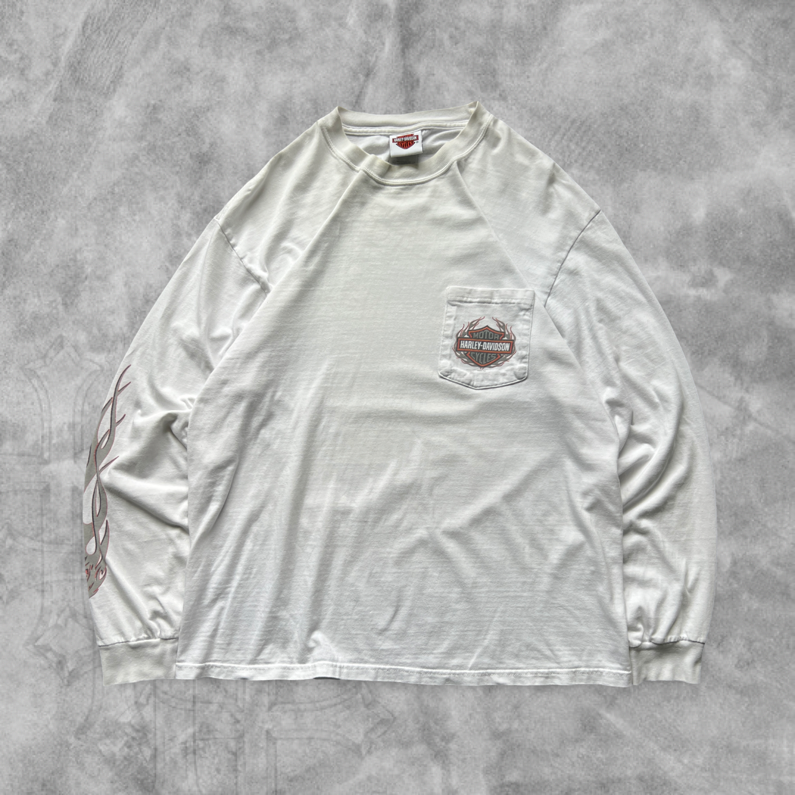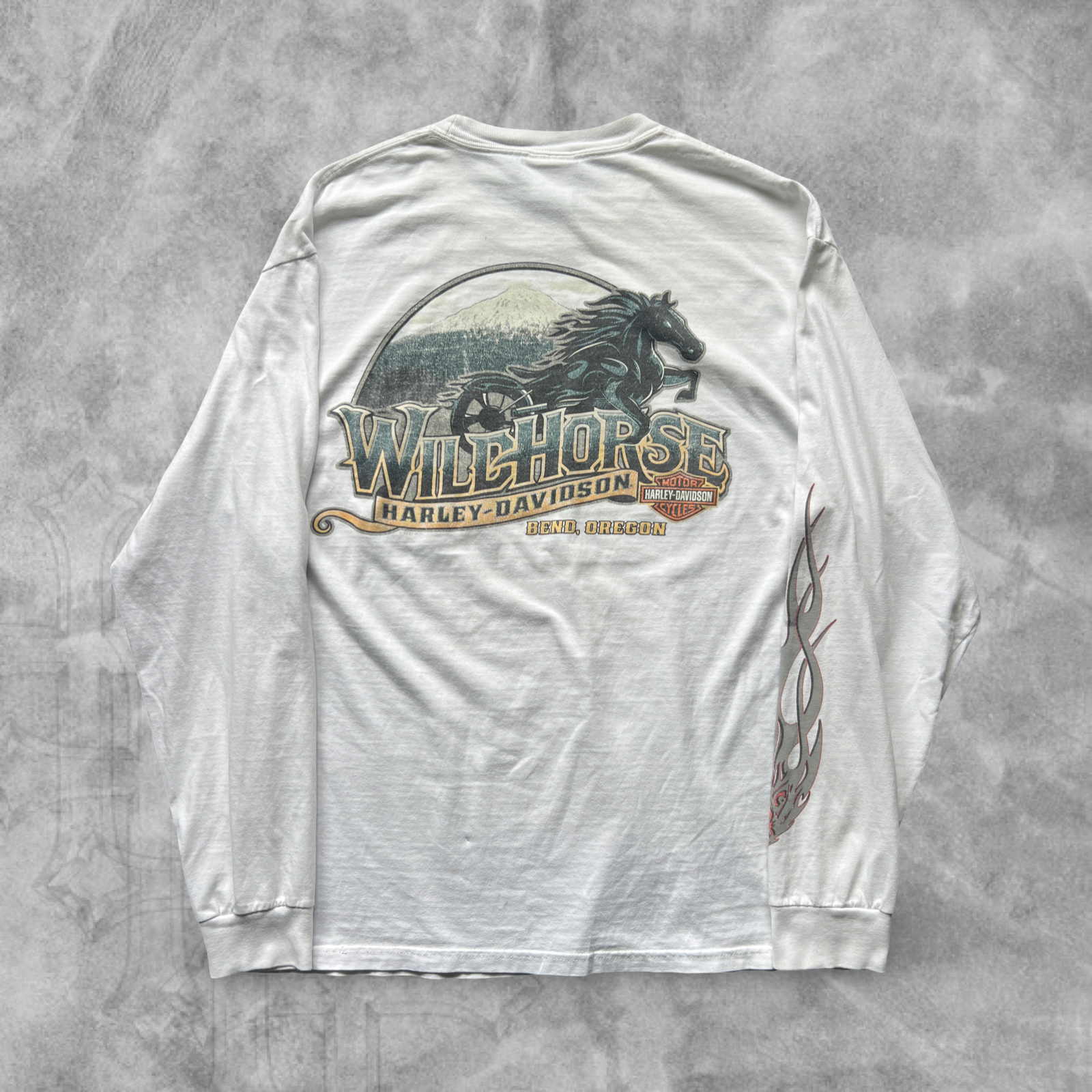White Harley Davison Wild Horse Long Sleeve Shirt 2000s (L)
